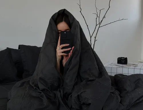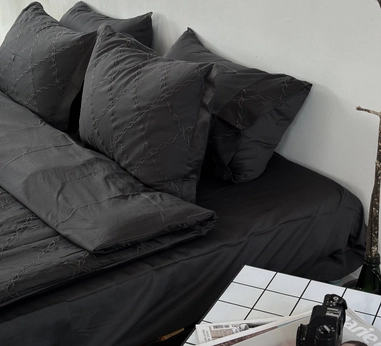 Комплект из вареного хлопка наволочки + пододеяльник | темно-серый