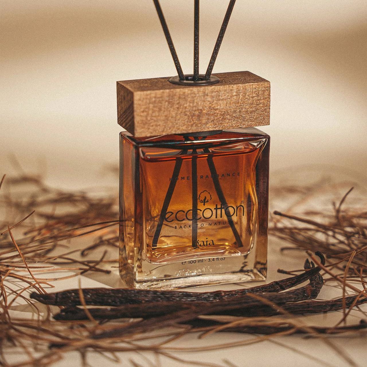 Изысканный аромат для помещений, представленный в полупрозрачном стекле в янтарных тонах, раскрывается фруктовой элегантностью османтуса и персика, обогащенной романтическим характером розы и фиалки, завершенной теплой глубиной ванильных нот, привносящей в жилое пространство сбалансированную и умиротворяющую атмосферу.