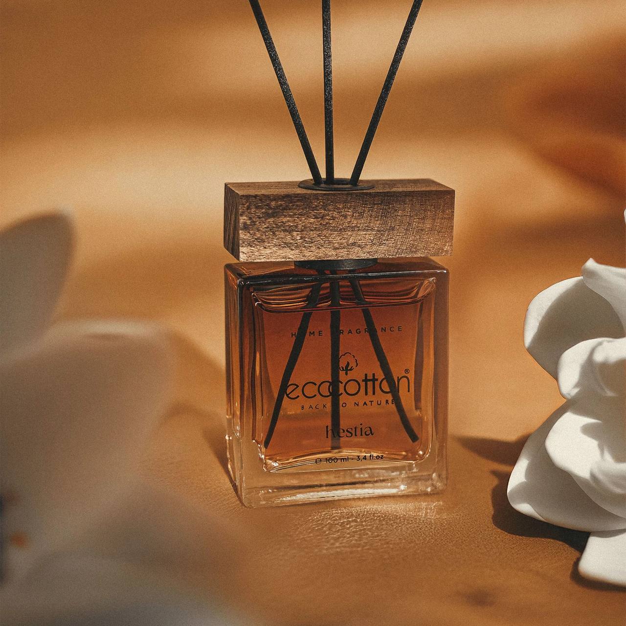 Изысканный аромат для помещений, представленный в специально разработанной полупрозрачной стеклянной форме, сочетает в себе теплый характер янтарных и древесных нот, дополненных элегантной свежестью белых цветов, привнося в домашнюю атмосферу умиротворяющую и изысканную ауру.