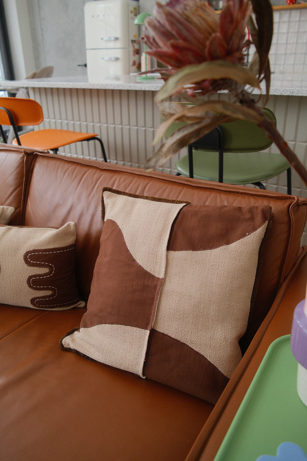 - Имеет трендовый дизайн, что позволяет использовать такую подушку в качестве оригинального акцента.