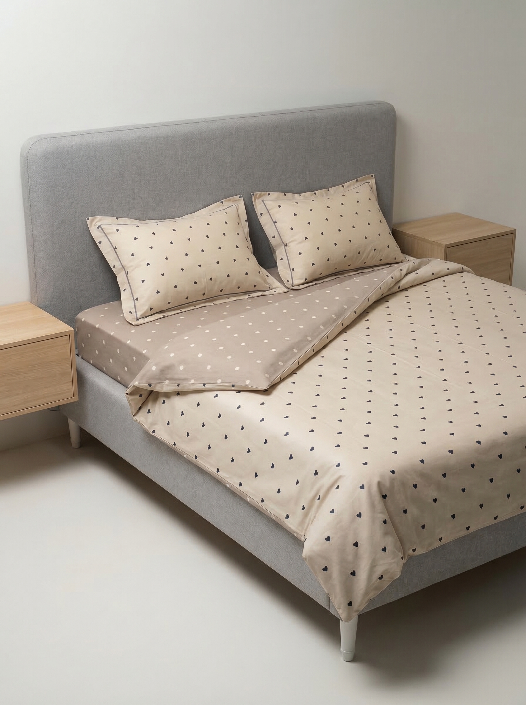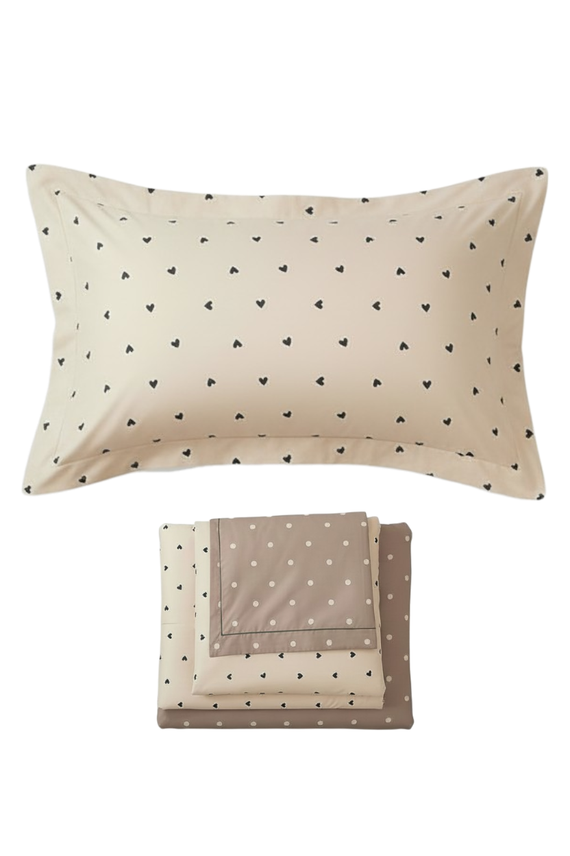 Комплект постельного белья из сатина (100% египетский хлопок). Полотно в светлых оттенках. Наволочки «оксфорд», пододеяльник на скрытом замочке.