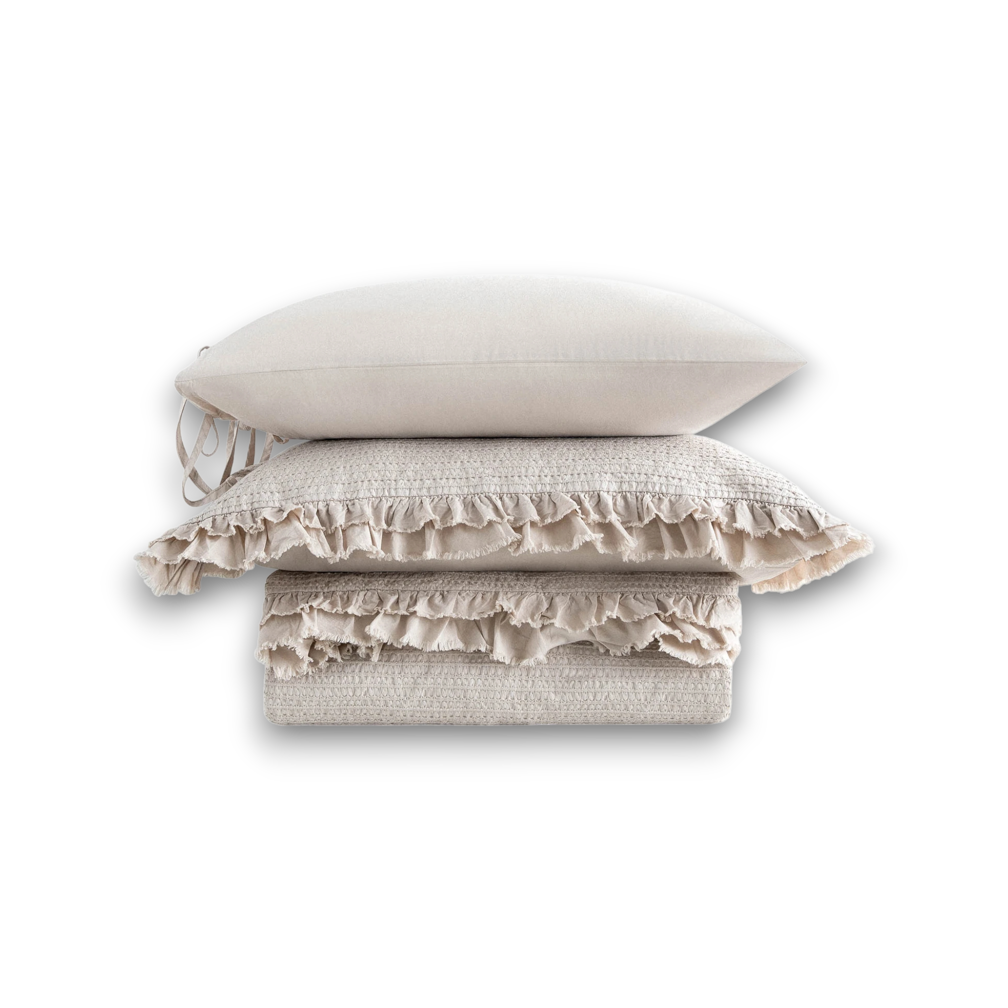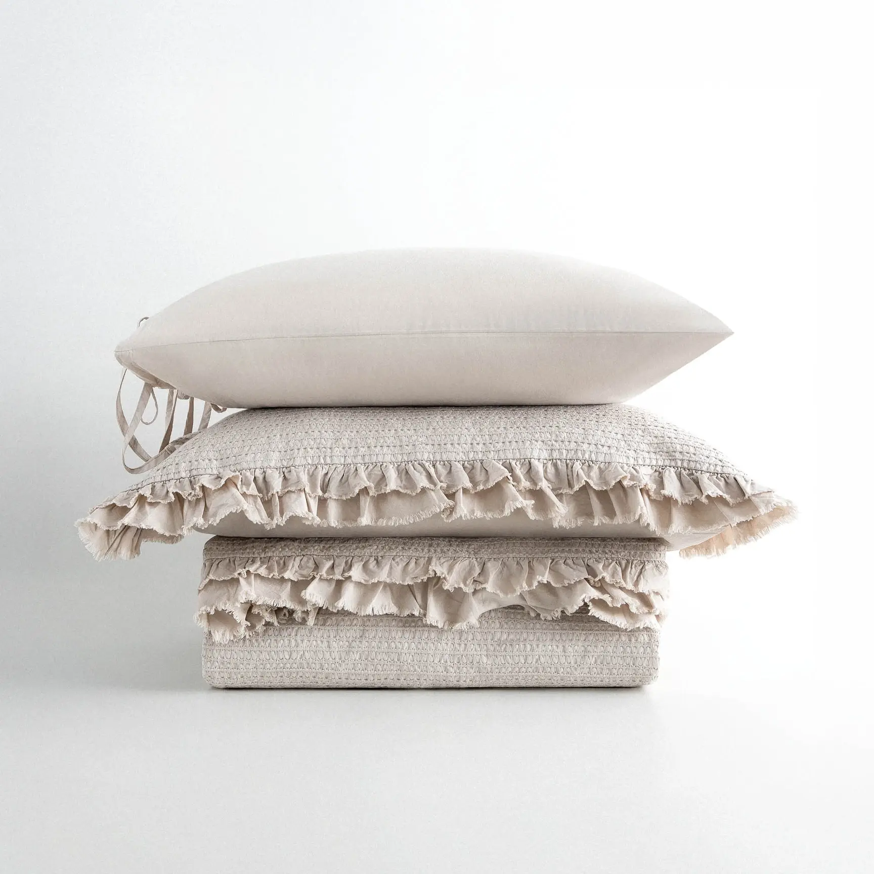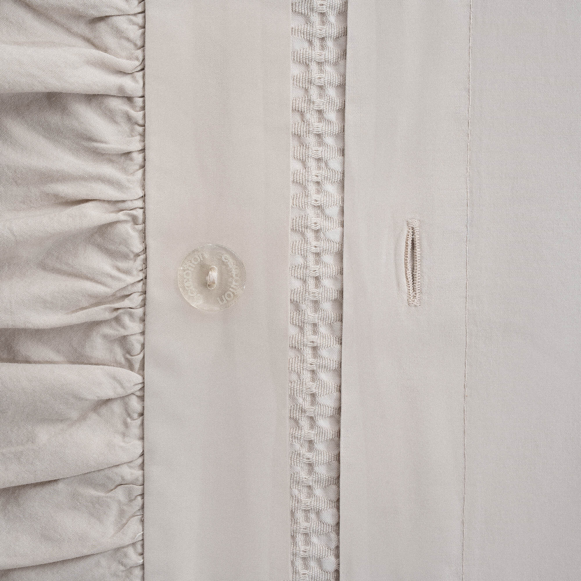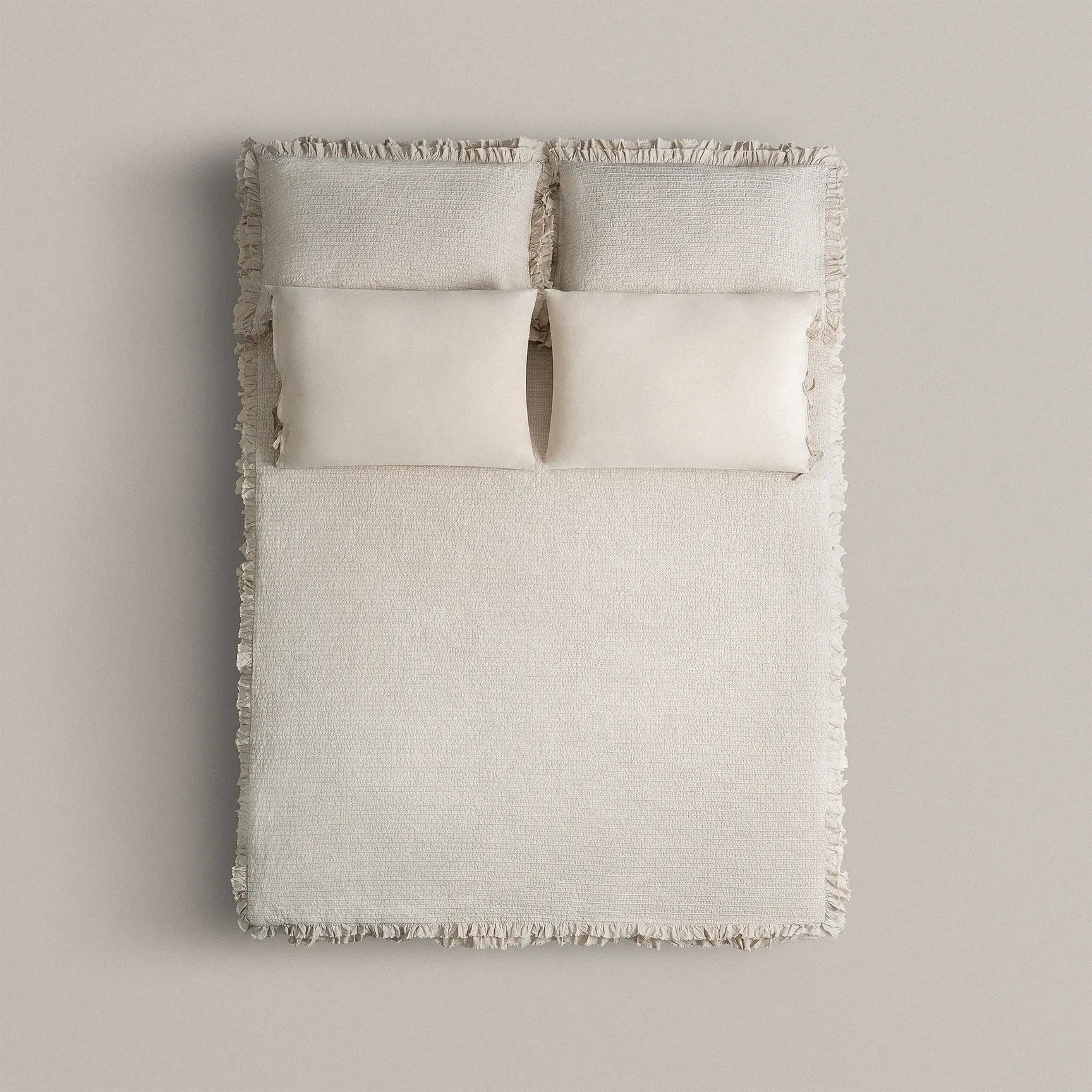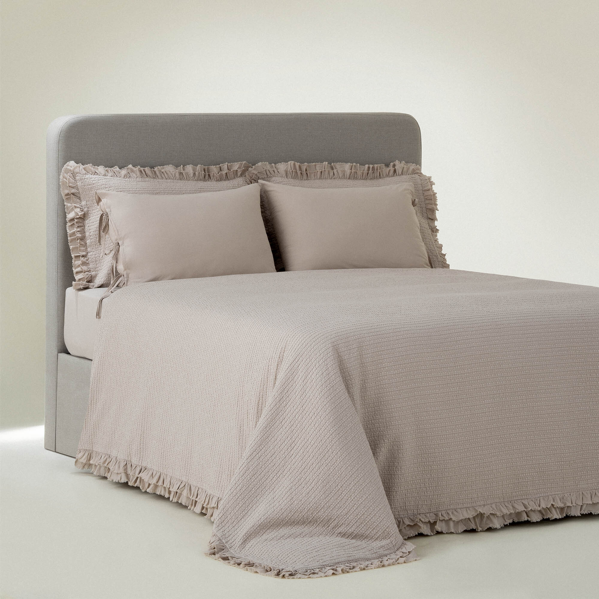 Минималистичный комплект с текстурой вареного хлопка, которое не требует глажки. Сатиновое полотно постельного белья выполнено из органического эгейского хлопка — мягкого, шелковистого и дышащего материала. Такой хлопок безопасен для человека и окружающей среды и выдерживает до 400 циклов стирки.