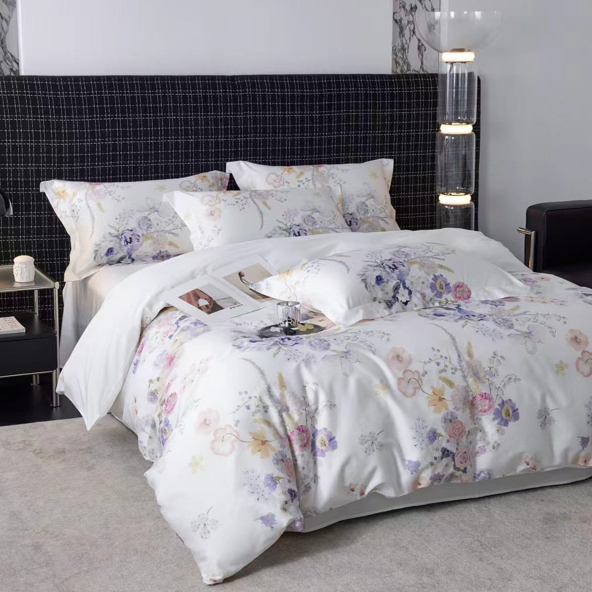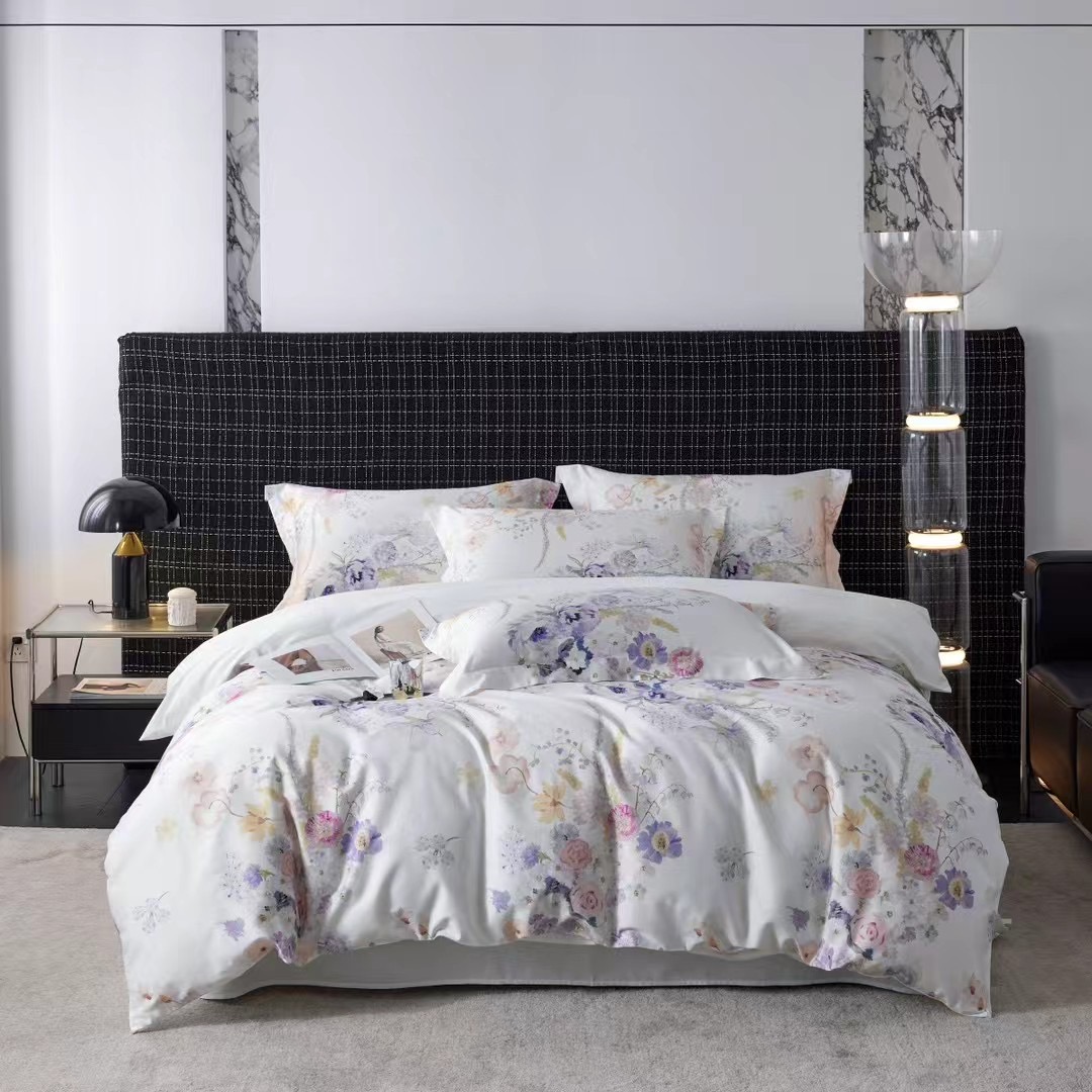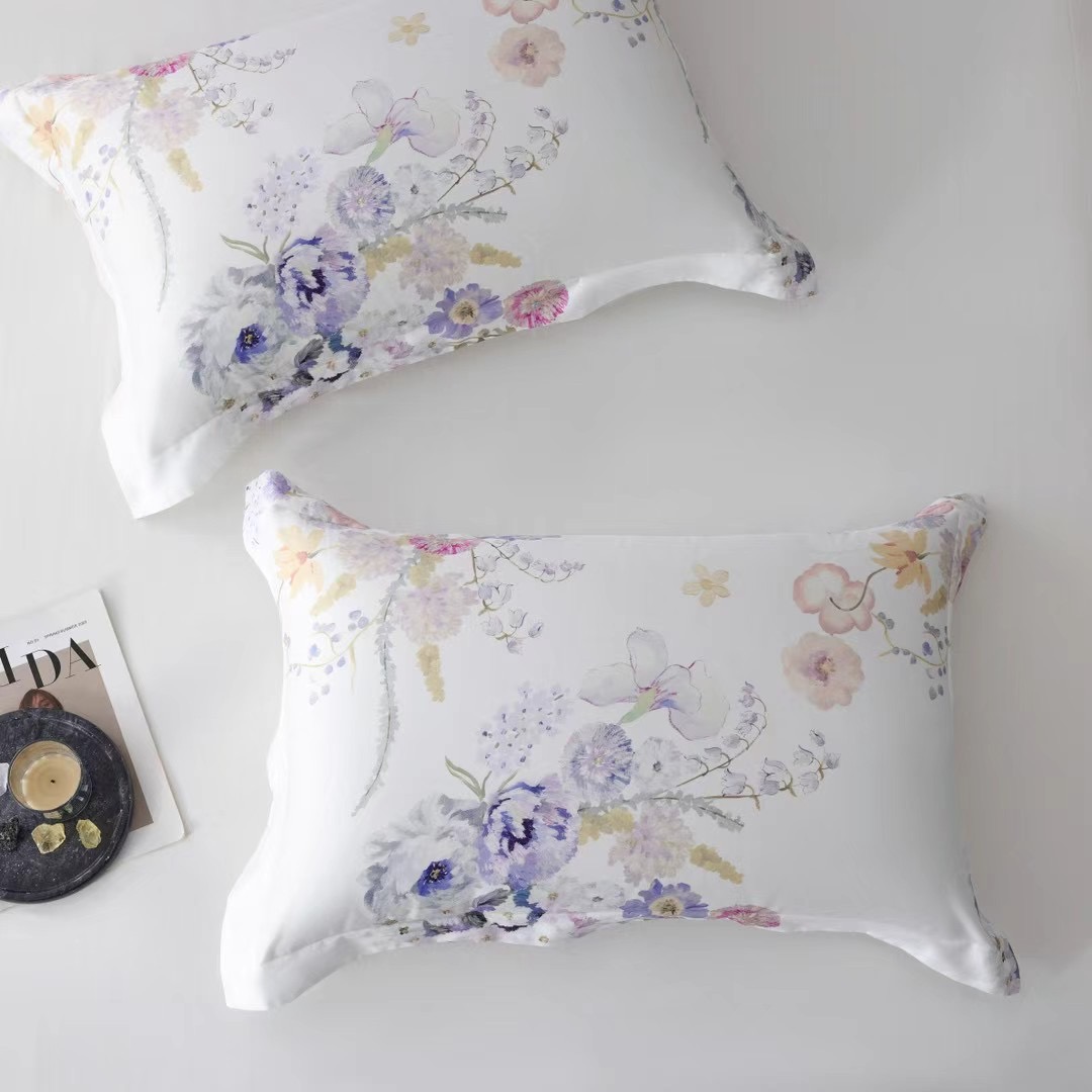 Комплект из сатина-люкс (египетский хлопок). Гармоничная комбинация нежного цветочного принта и шелковистой однотонного полотна простыни.