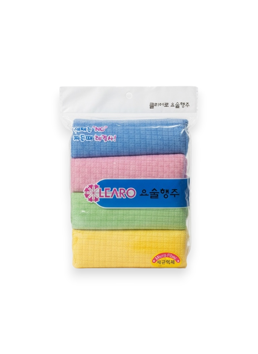 Набор из четырех салфеток для уборки. Плотные ребристые салфетки из микрофибры работают с любыми поверхностями: стеклом, хромом, лаком, деревом и эмалью.
