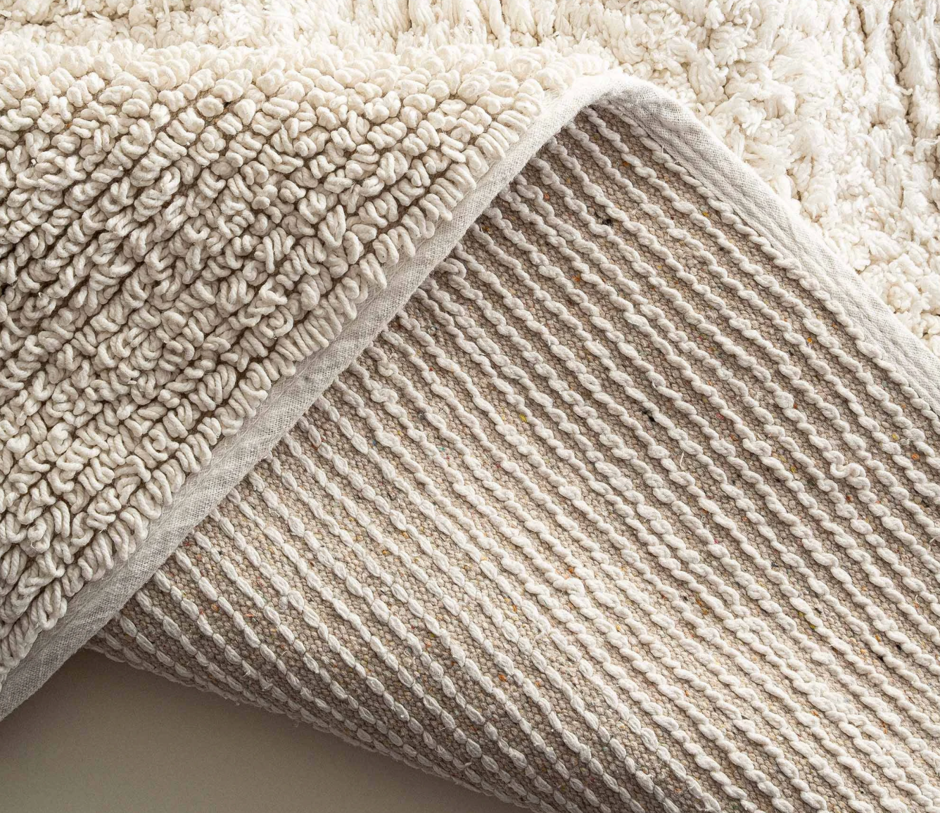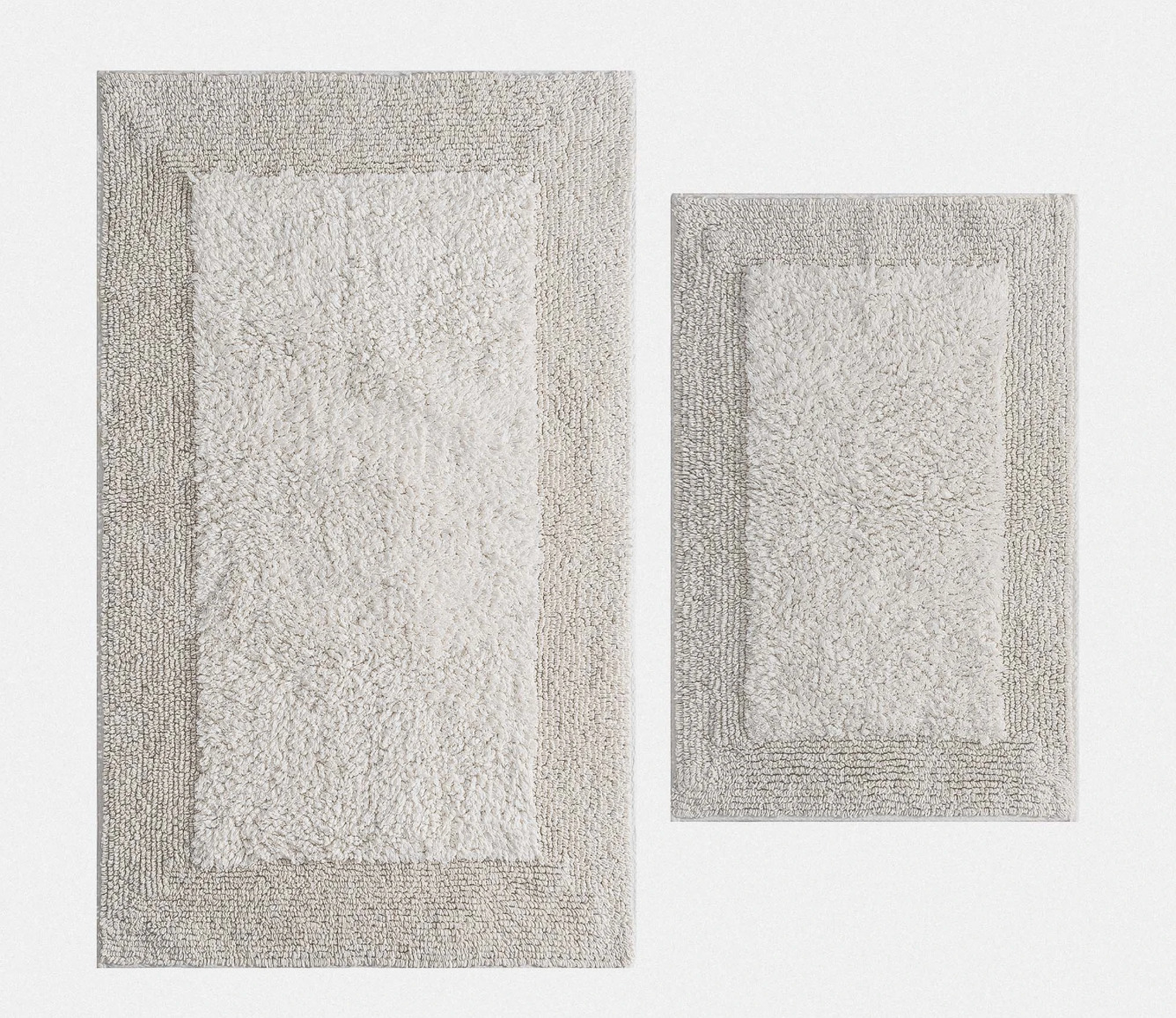 Набор из двух рельефных ковриков для ванной из хлопка высокой плотности. Текстильные коврики — одно из самых практичных решений для ванных комнат. Они быстро сохнут, благодаря чему не накапливают в себе бактерий. А еще такие коврики легко освежить, постирав в обычной стиральной машине.
