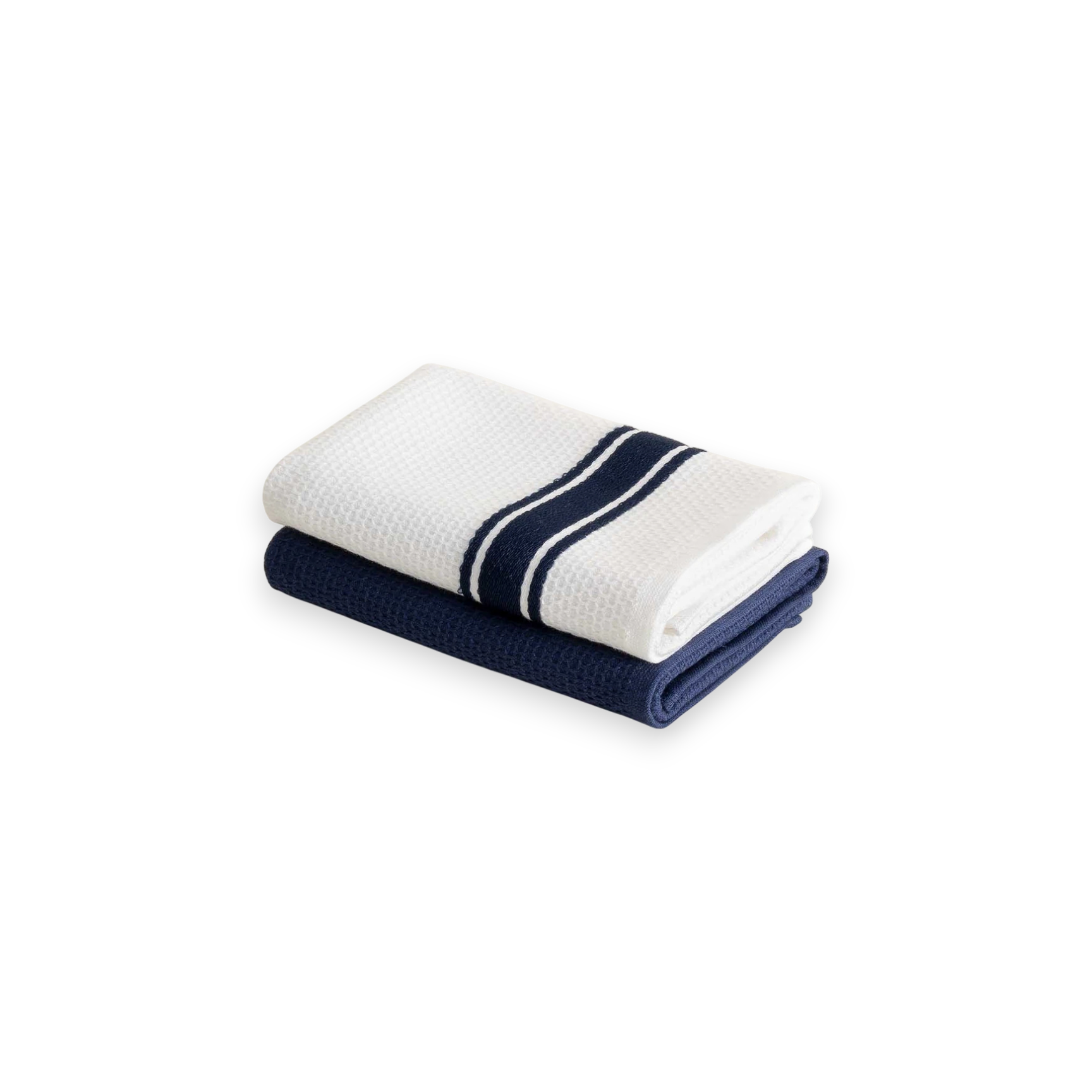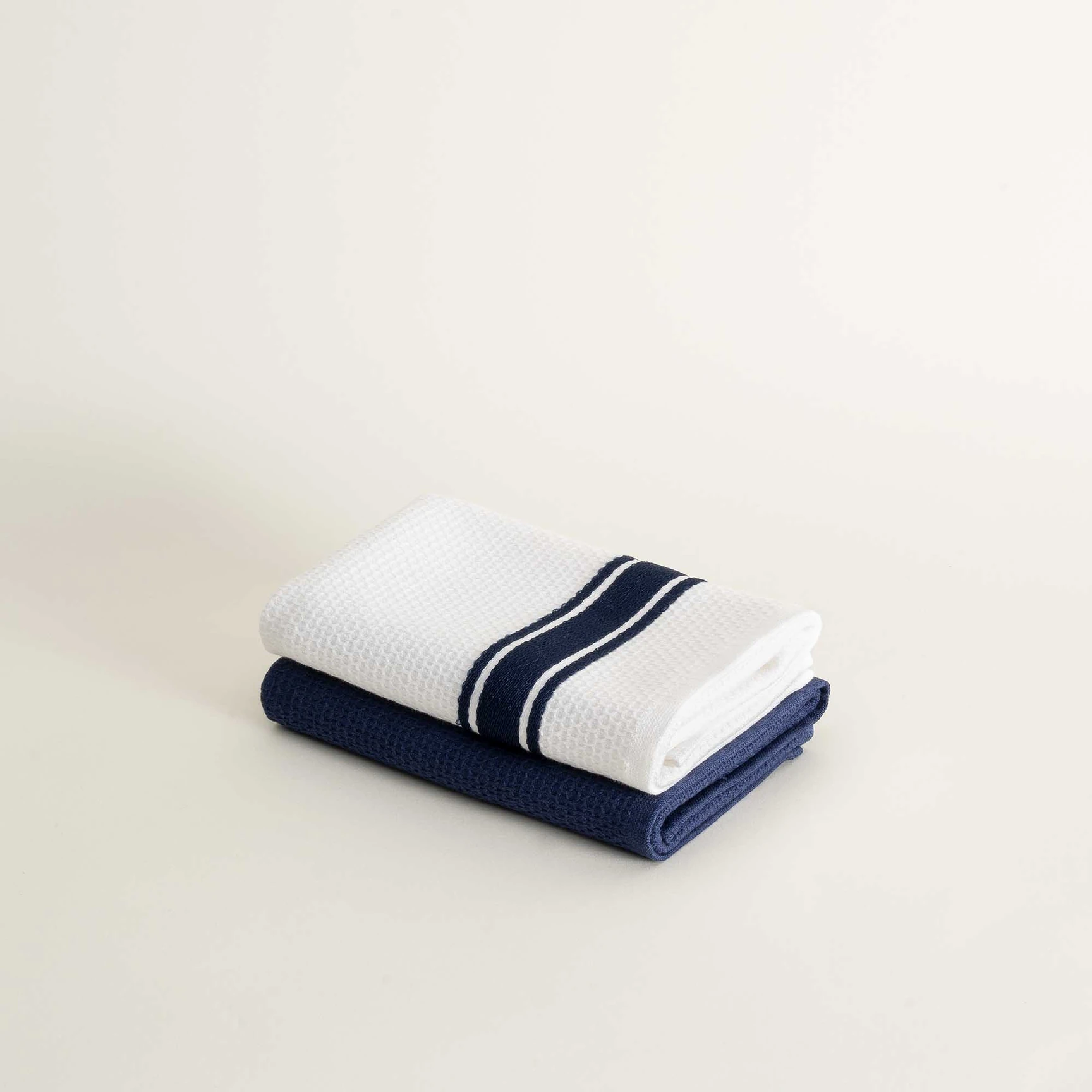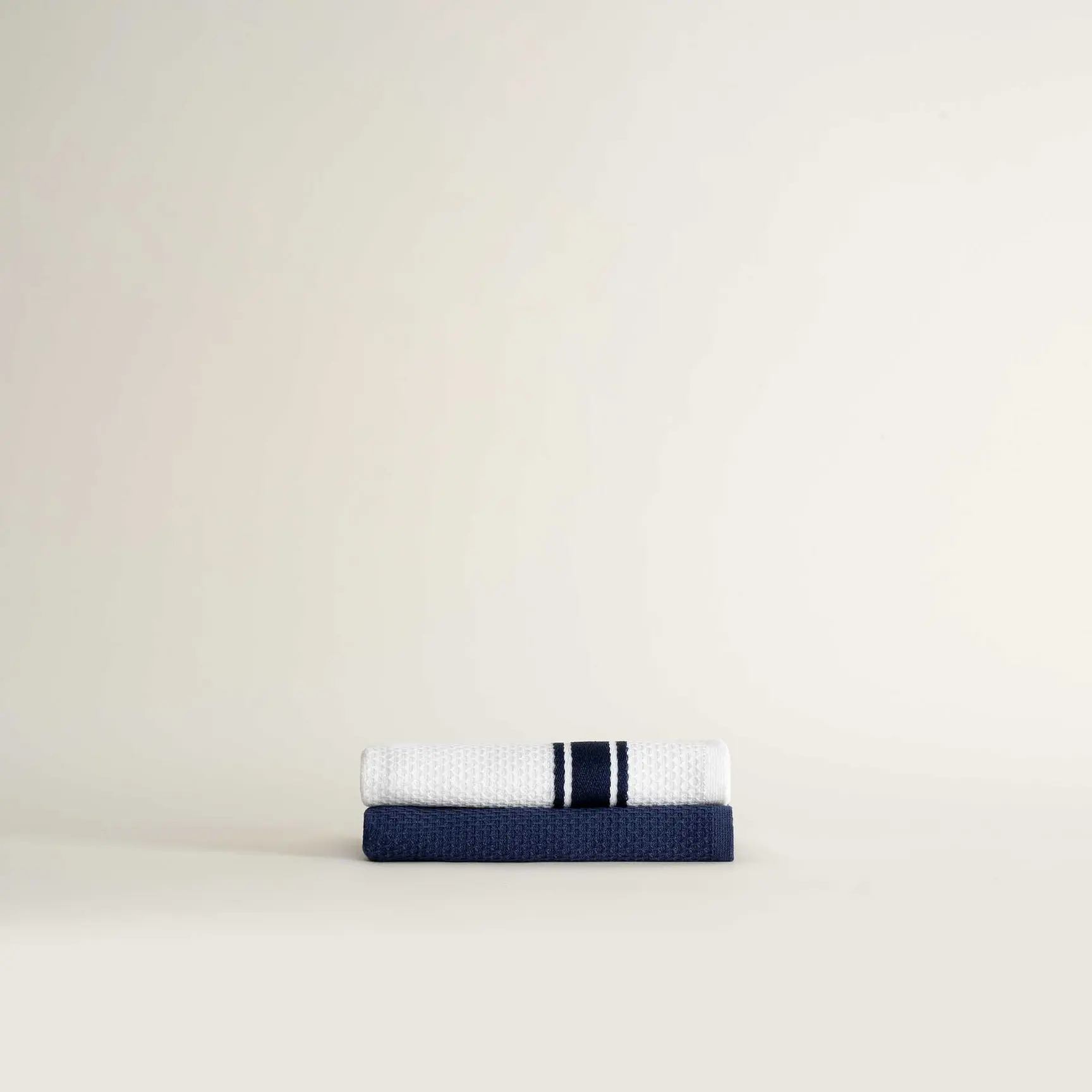 Набор двух кухонных полотенец из органического хлопка с петелкой. Плотный махровый хлопок отлично впитывает влагу и не меняет своих свойств после многочисленных стирок.