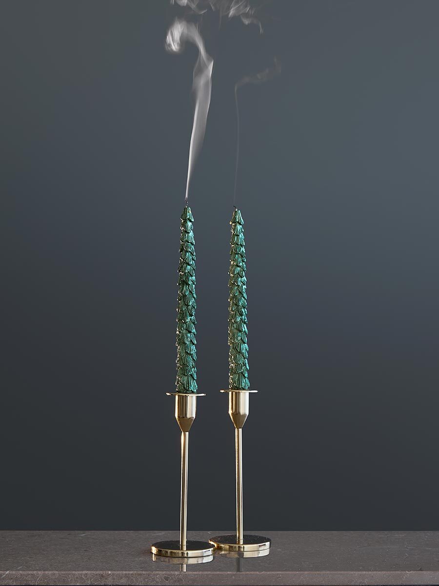 Набор из двух свечей из коллекции New Year Essential создаст волшебную атмосферу праздника. Высокие зеленые елочки идеально подходят для украшения праздничного стола, камина или подоконника.