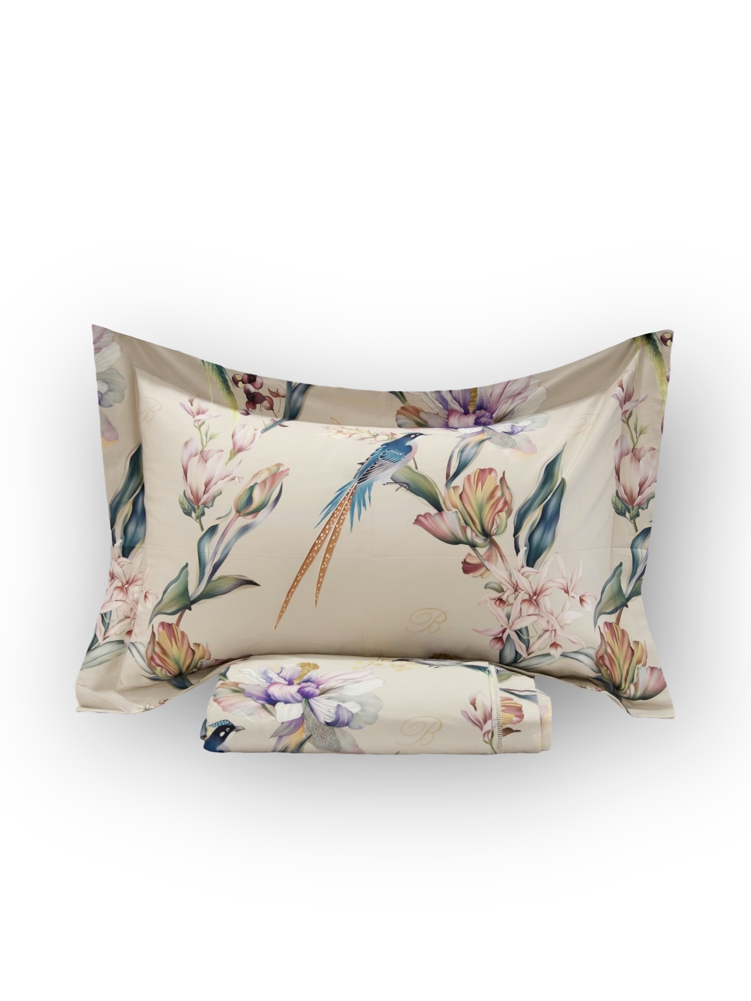 В комплекте две наволочки, большая двуспальная простынь и универсальное демисезонное одеяло. Качественная отделка швов и кромок, превосходная детализация.