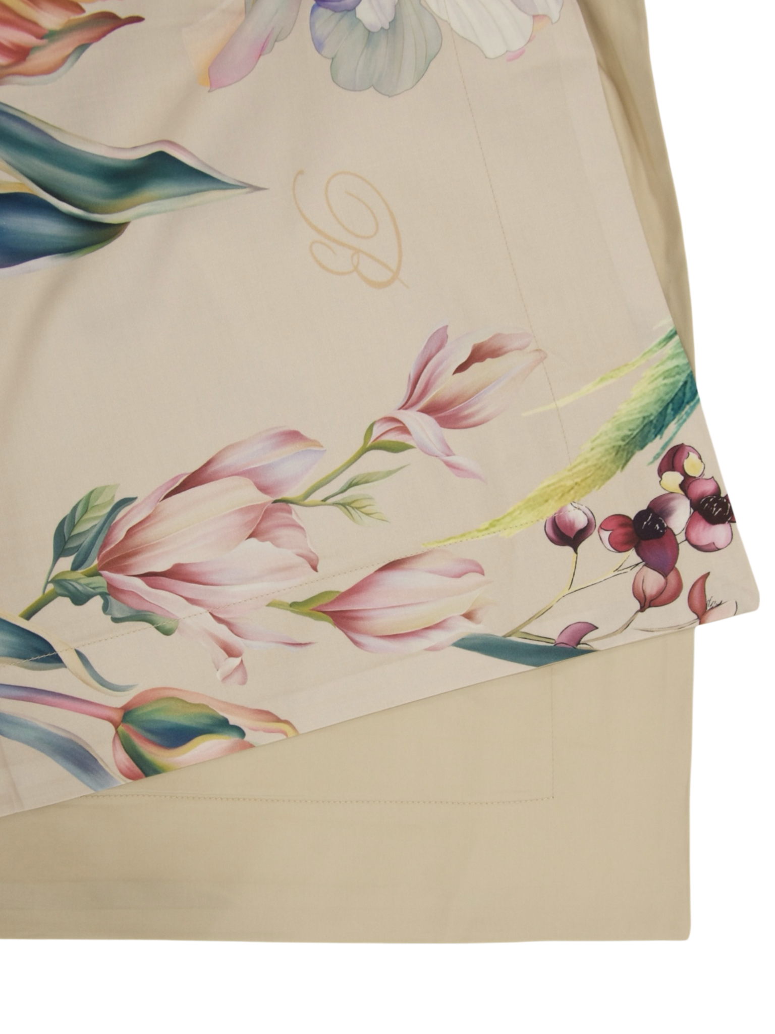 Комплект постельного белья с одеялом средней плотности. Выполнен из нежного сатина — натурального хлопка высокой плотности плетения нитей. Такое постельное белье сочетает высокую прочность и долговечность, сохраняя мягкую шелковистую фактуру ткани.