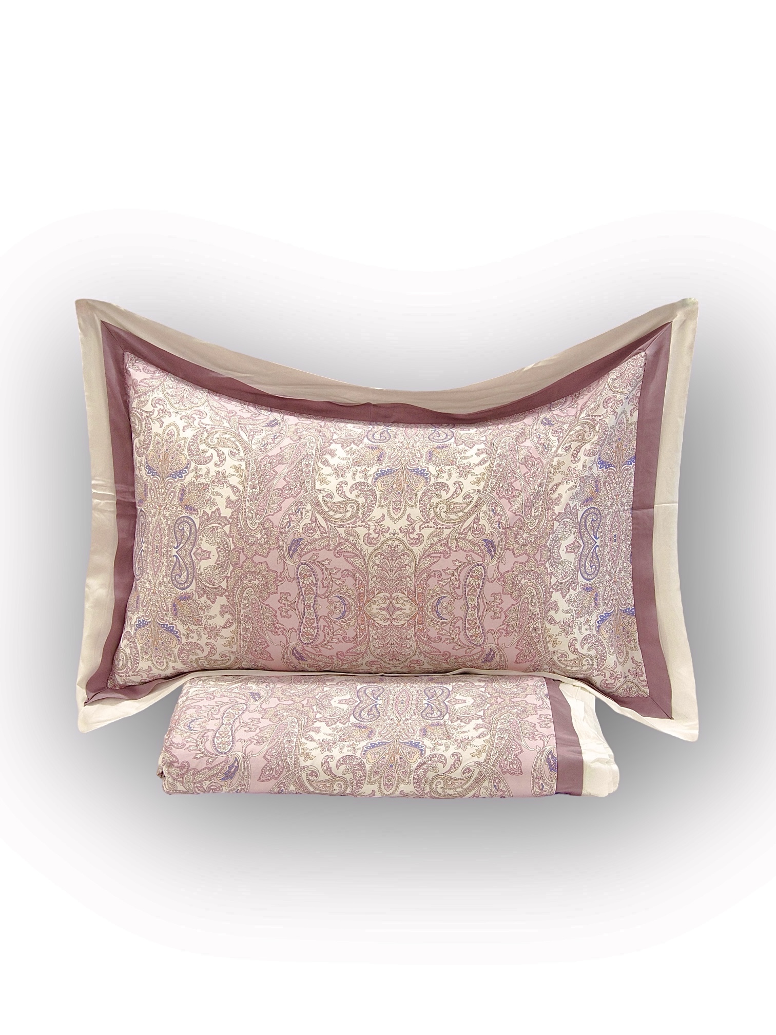 В комплекте две наволочки, большая двухспальная простынь и легкое одеяло с наполнителем из волокон бамбука. Качественная отделка швов и кромок, превосходная детализация.