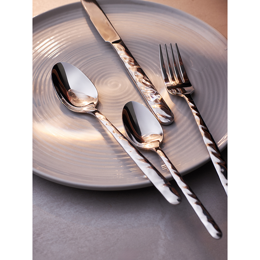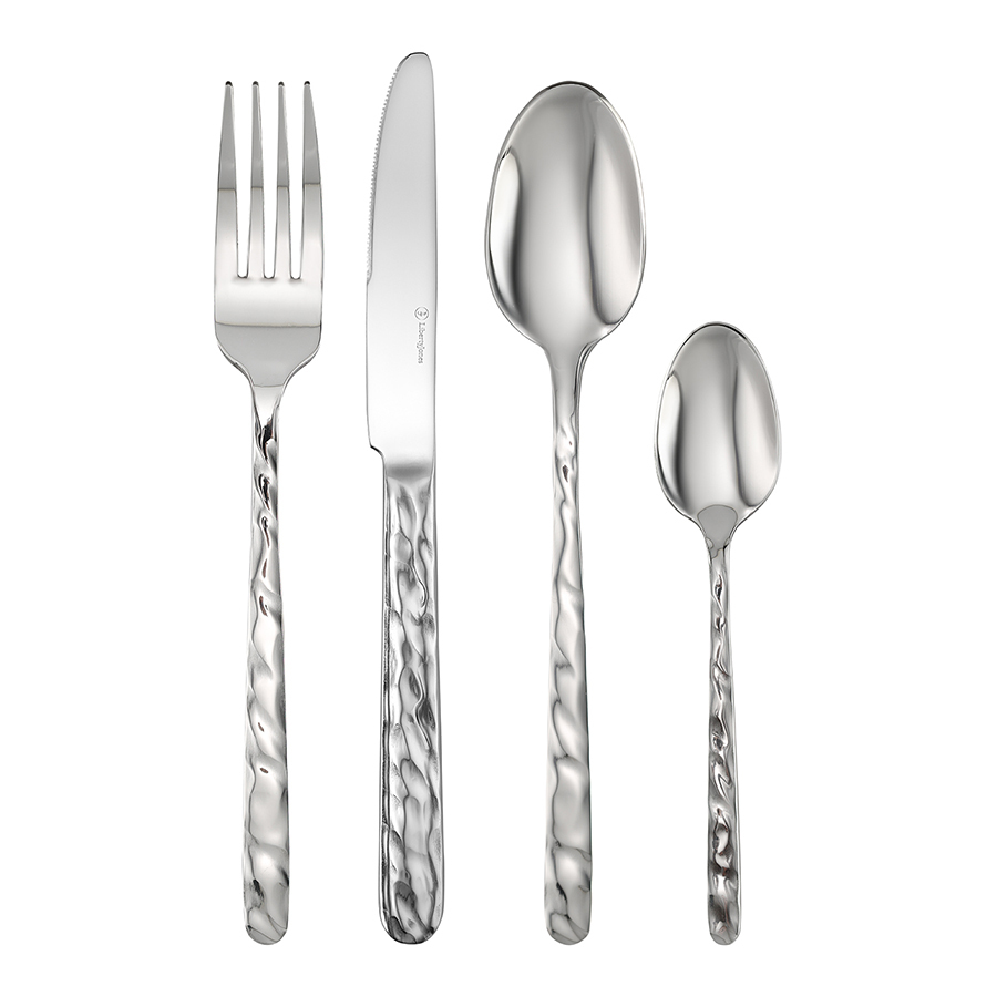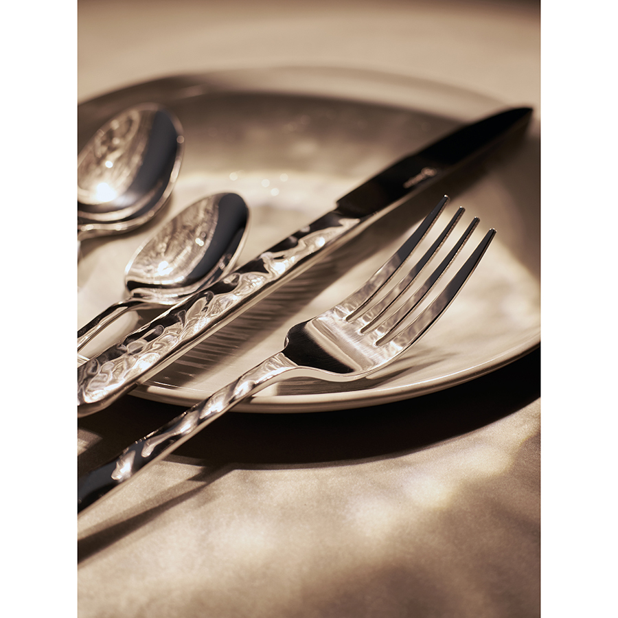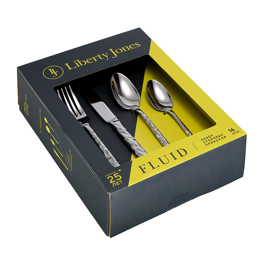 Столовые приборы Fluid – великолепное сочетание элегантного дизайна и функциональности. Сияние зеркальной полировки и плавные, обтекаемые формы делают их настоящим украшением стола. Набор состоит из 16 предметов и включает все необходимое для обслуживания 4-х человек.