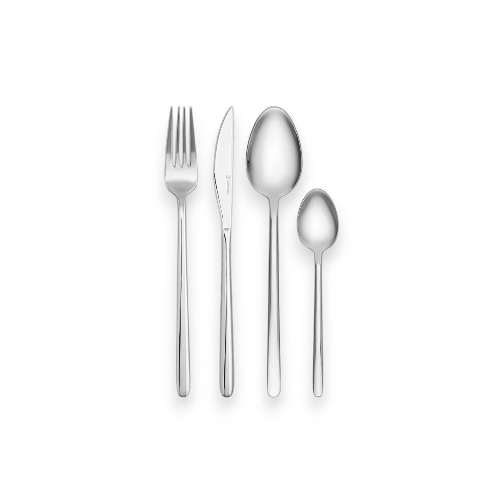 Набор столовых приборов Pure станет идеальным выбором для сервировки стола на любое мероприятие, будь то обычный семейный ужин или праздничный обед. Красивый блеск стали, плавные формы и деликатные изгибы каждого предмета создают гармоничное сочетание стиля и функциональности, позволяя наслаждаться каждым приемом пищи. Набор рассчитан на шесть персон. Стандартный сет на одного человека включает в себя нож, вилку, столовую и чайную ложки.