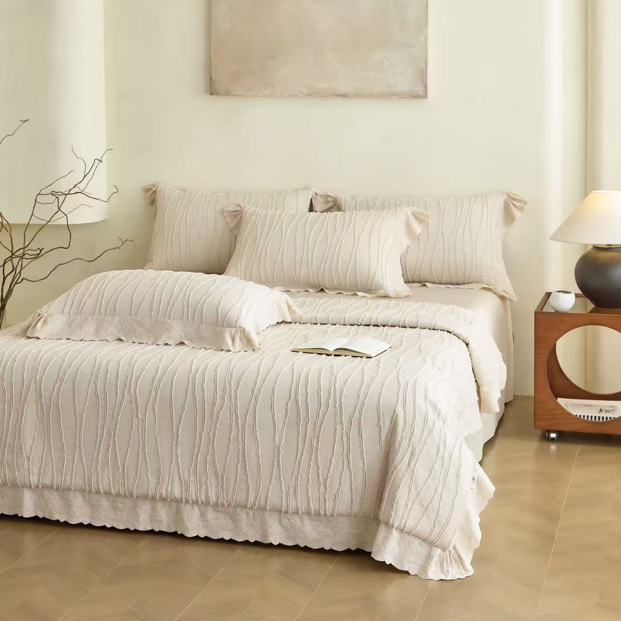 Мягкое одеяло будет дарить нежность и согревать прохладными ночами. Наперник с эффектом вареного хлопка с нежным набивным узором.
