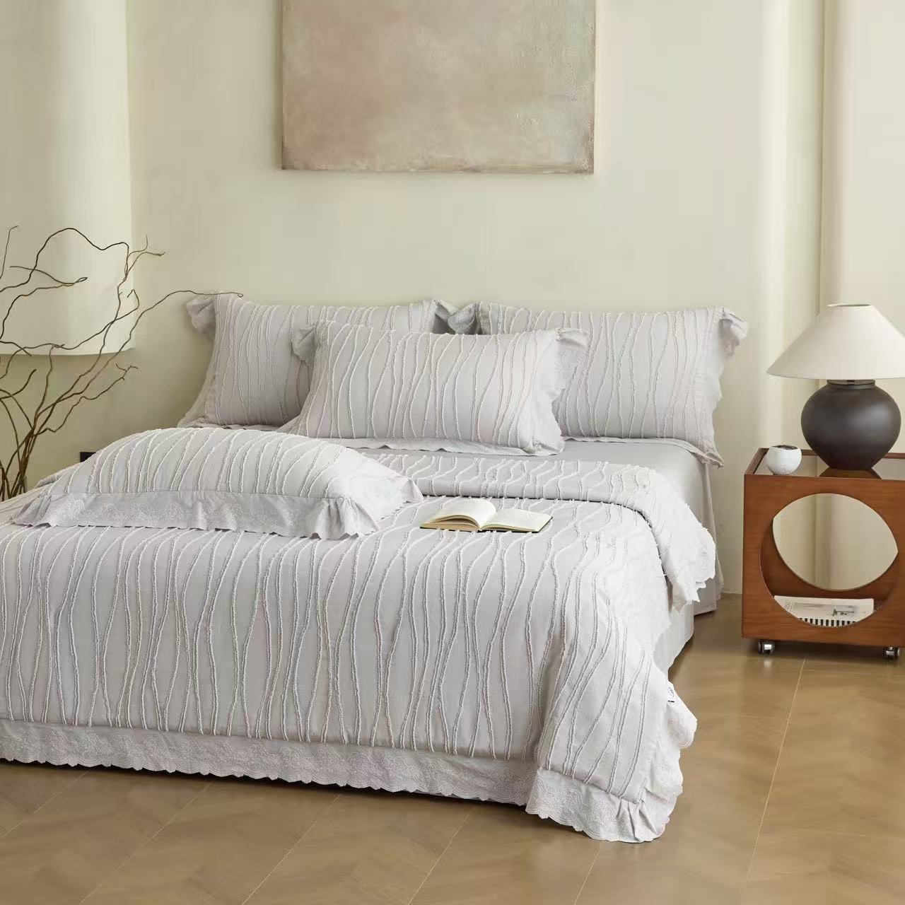 Мягкое одеяло будет дарить нежность и согревать прохладными ночами. Наперник с эффектом вареного хлопка с нежным набивным узором.