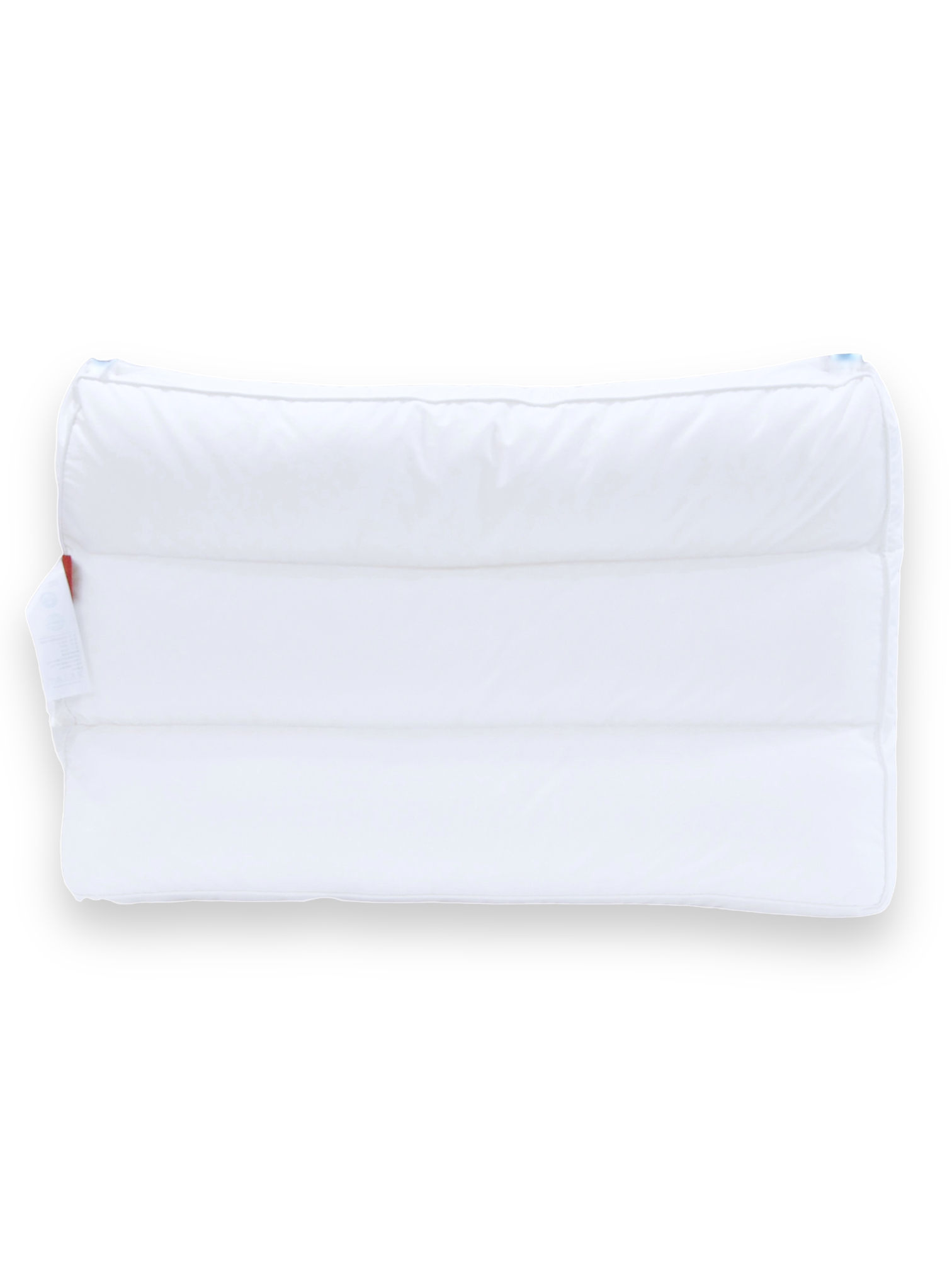Ортопедическая подушка с наполнителем из натуральных волокон шелка и бамбука и из натурального гусиного пуха. В меру мягкая и упругая, средней жесткости.