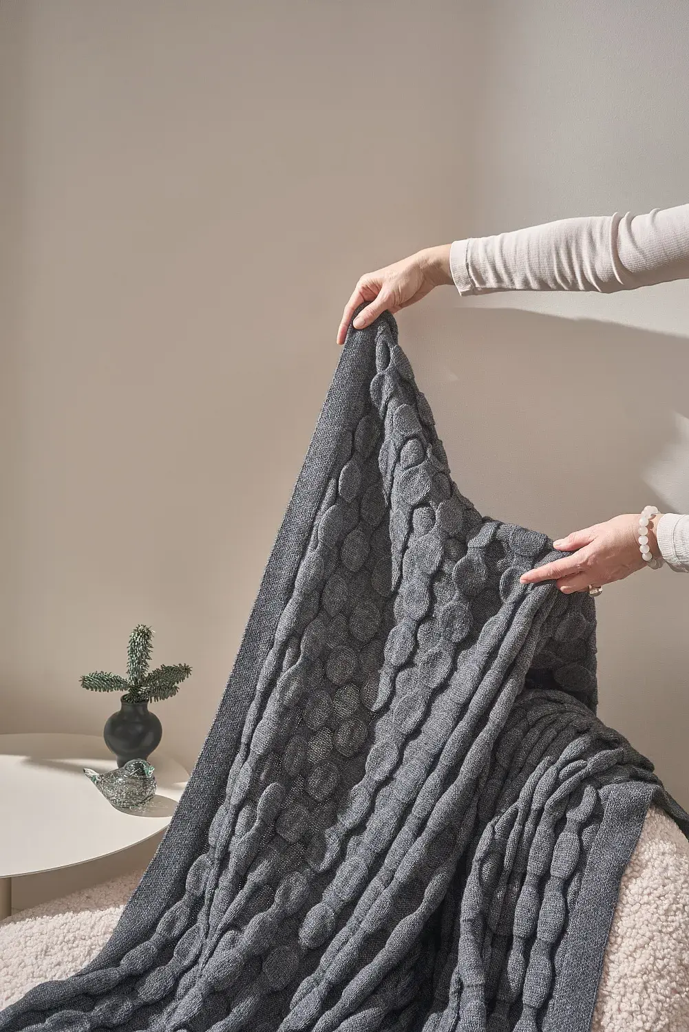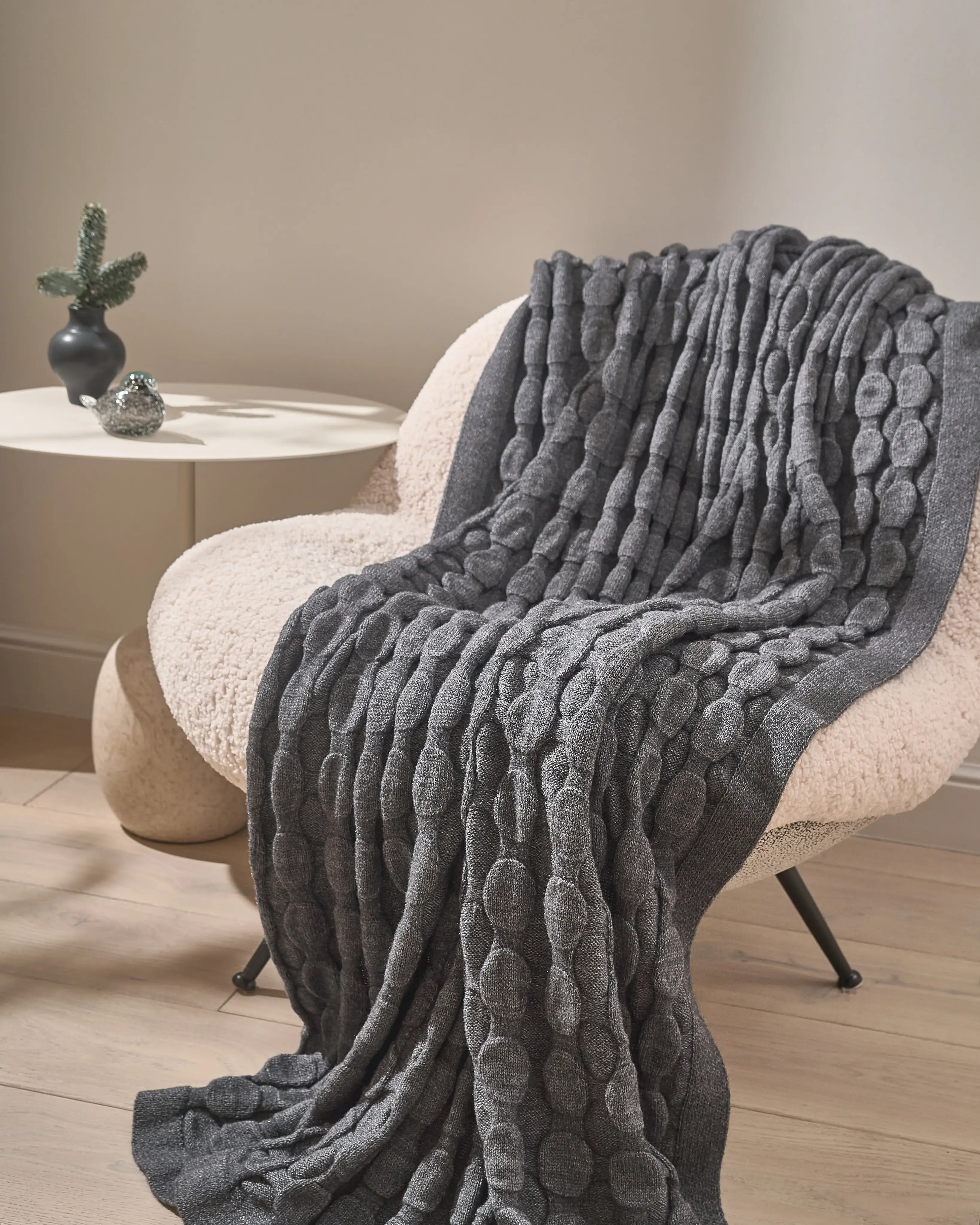 Дизайнерский плед BUBBLES связан с эффектом 3Д рисунка, он точно не останется не замеченным даже в самом трендовом интерьере, потому что его дизайн - современное произведение искусства.