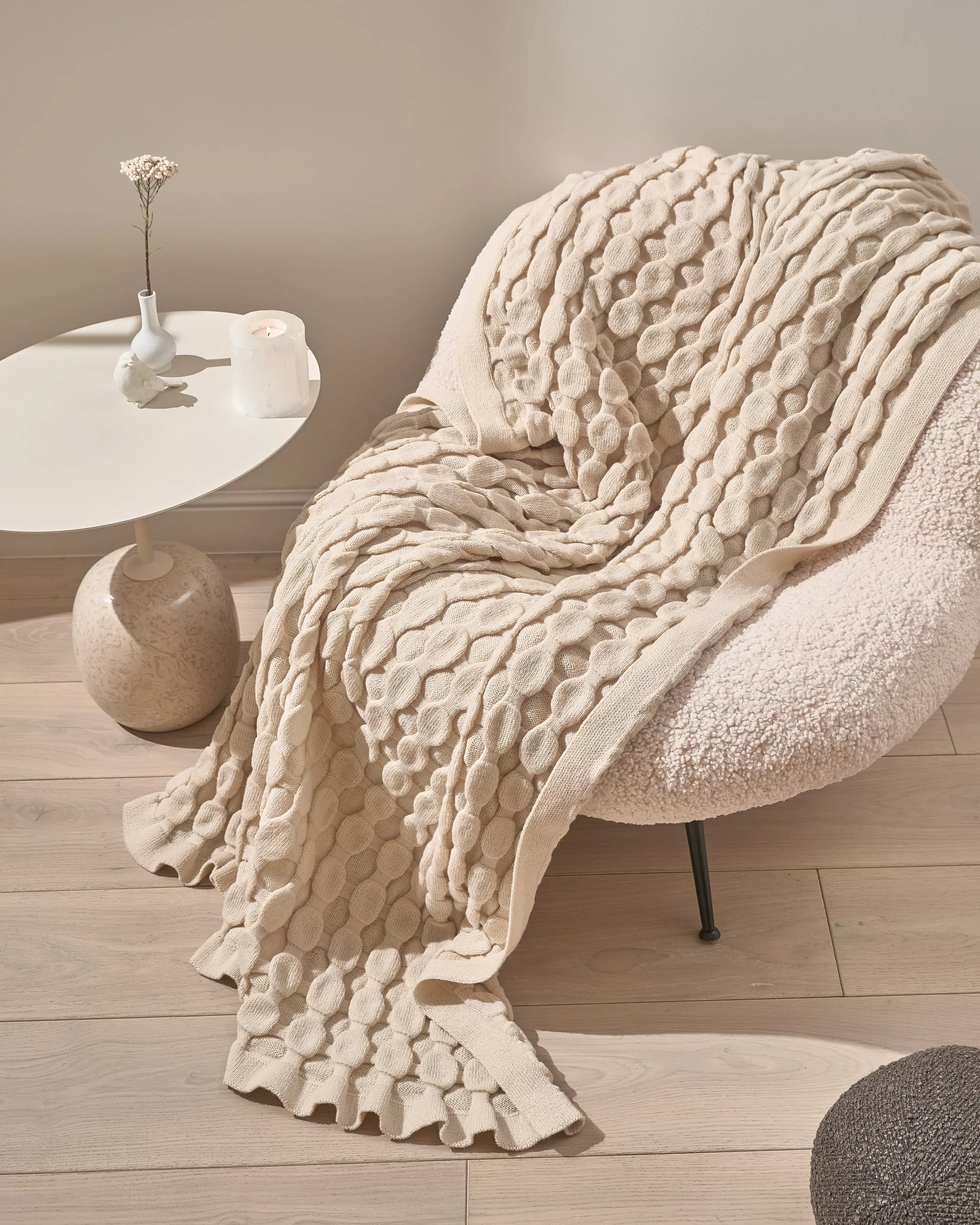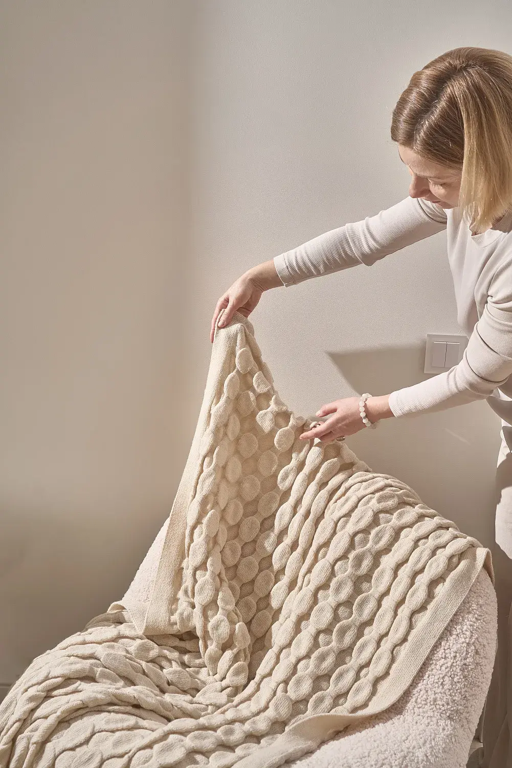 Дизайнерский плед BUBBLES связан с эффектом 3Д рисунка, он точно не останется не замеченным даже в самом трендовом интерьере, потому что его дизайн - современное произведение искусства.