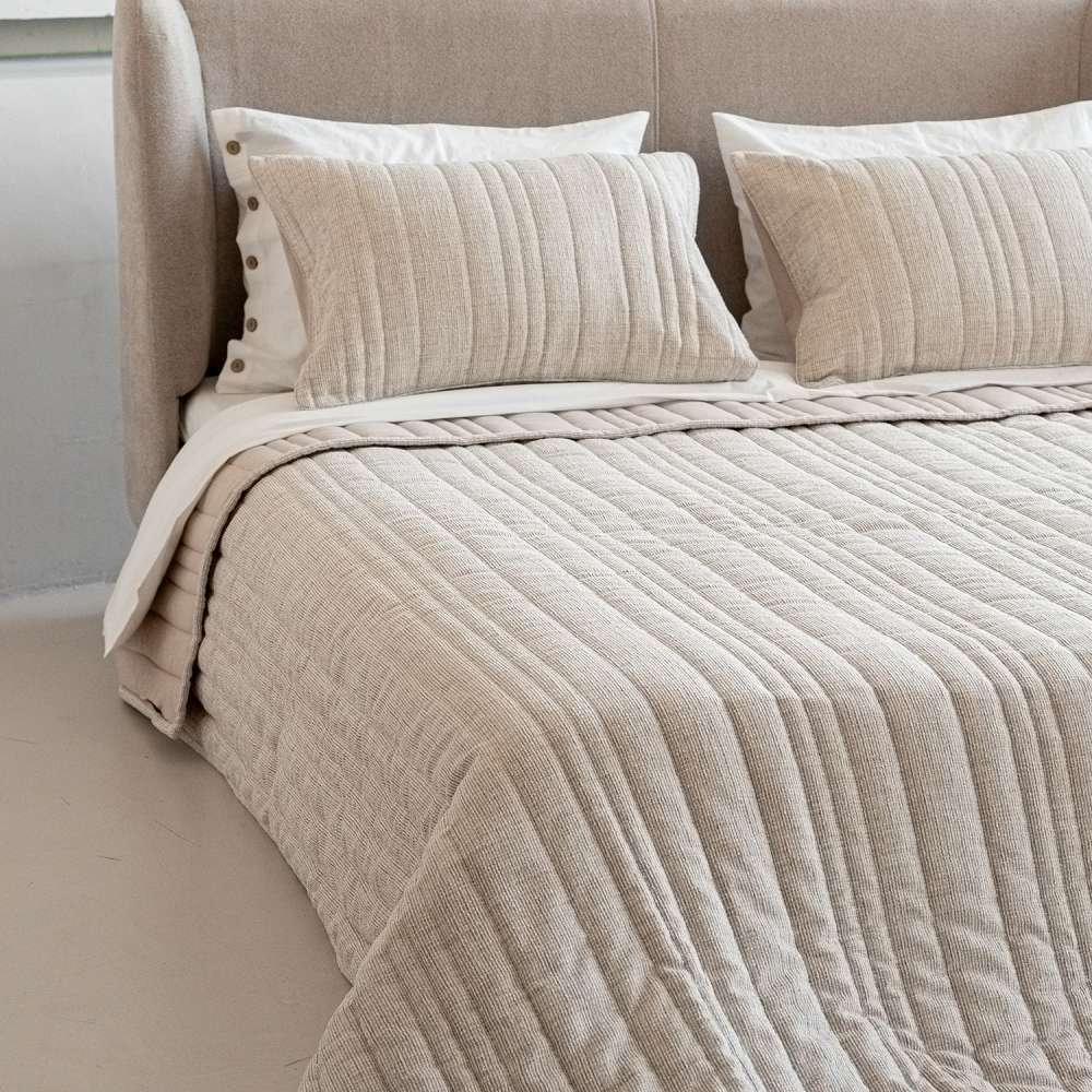 Стеганое покрывало из плотной, уютной декоративной ткани на подкладке из 100% хлопка. В комплект входят декоративные наволочки 50х70 см.