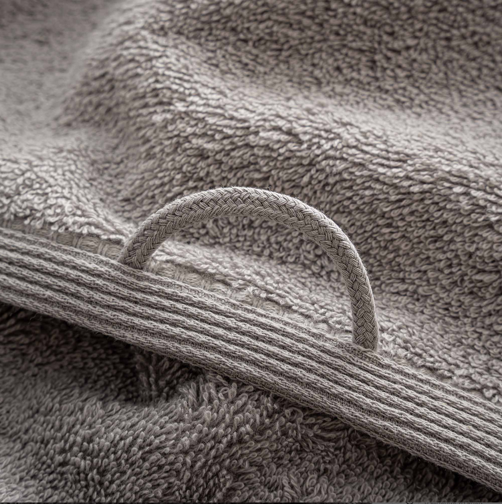 Полотенце из органического хлопка. Отлично впитывает влагу и не меняет своих свойств при стирке. Хлопковая петелка — для удобства использования.