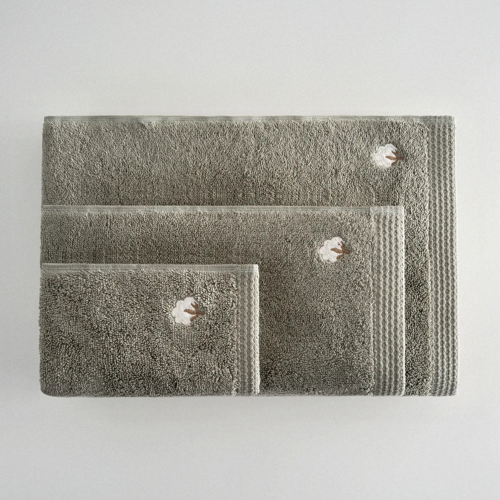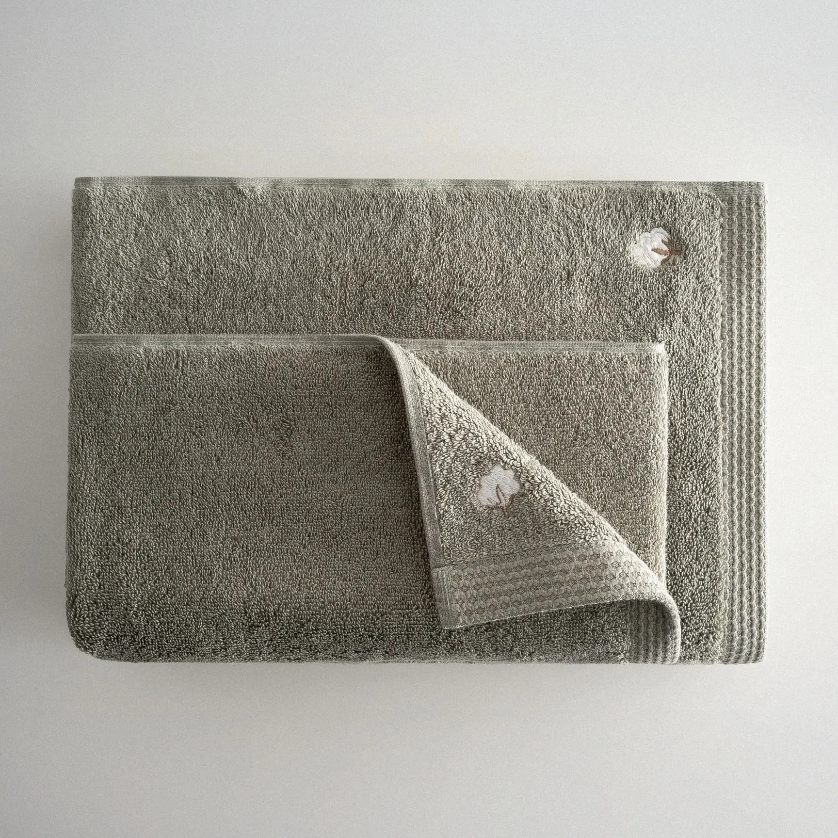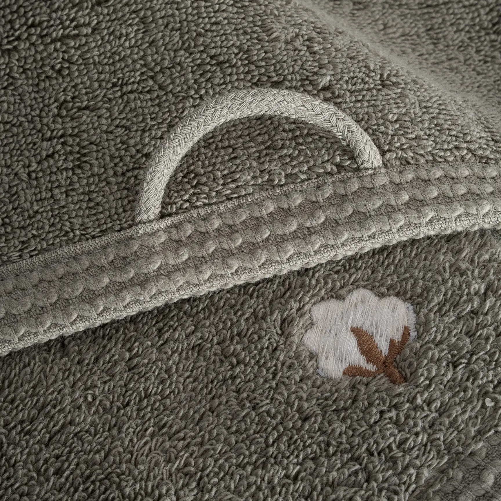 Банное полотенце из органического хлопка с декоративной вышивкой. Мягкий, плотный ворс средней длины. Отлично впитывает влагу и не меняет своих свойств при многочисленных циклах стирки. Хлопковая петелка — для удобства использования.