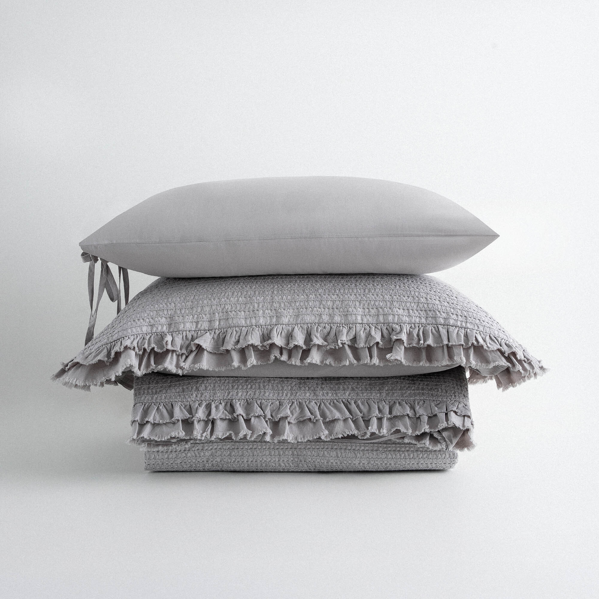 Минималистичный комплект с текстурой вареного хлопка, которое не требует глажки. Сатиновое полотно постельного белья выполнено из органического эгейского хлопка — мягкого, шелковистого и дышащего материала. Такой хлопок безопасен для человека и окружающей среды и выдерживает до 400 циклов стирки.