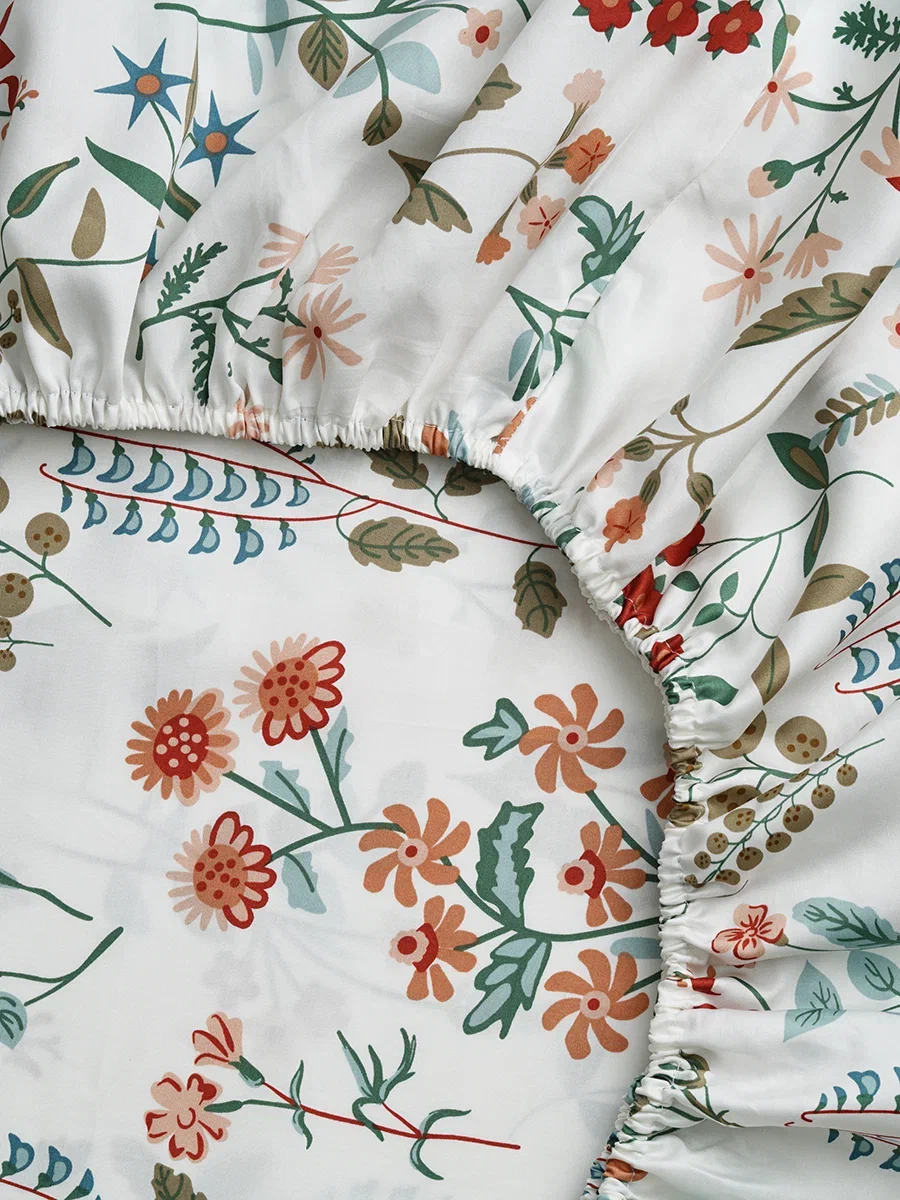 Сатиновая простынь на резинке ГЛОРИЯ 160х200 | цветочный принт