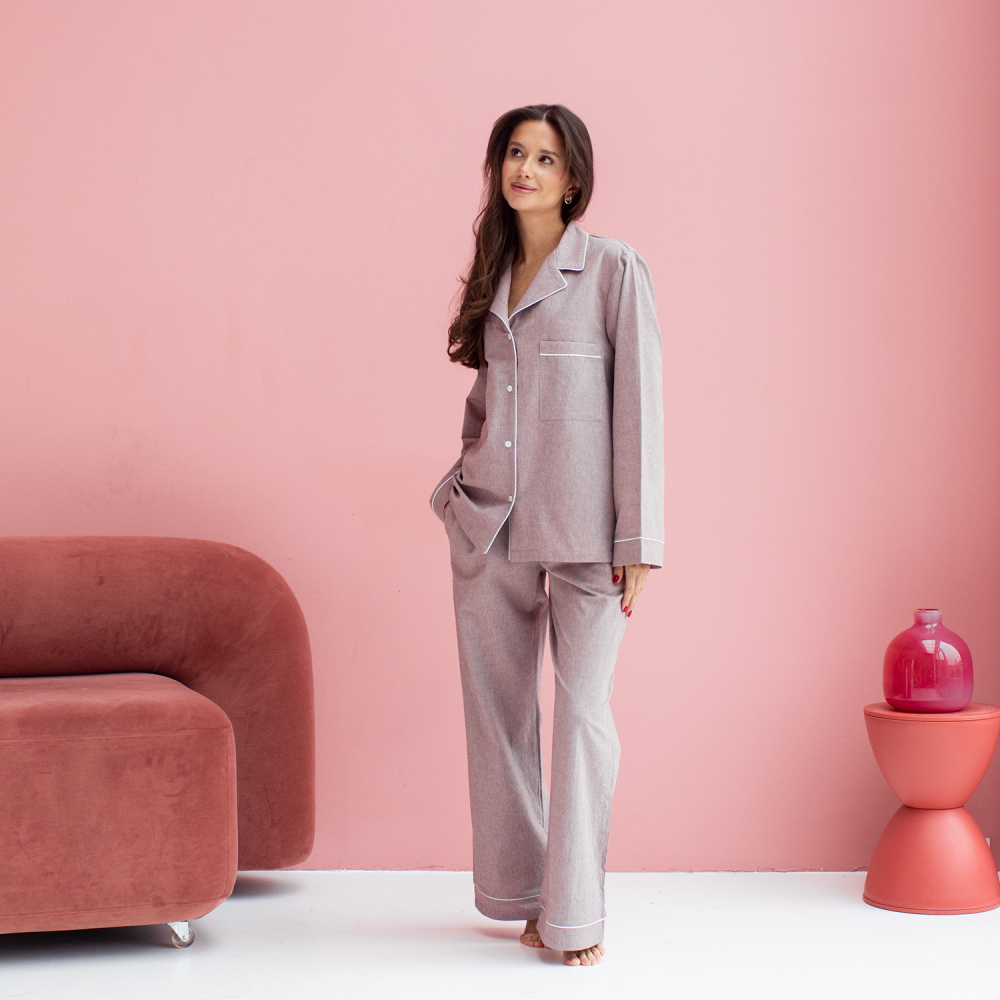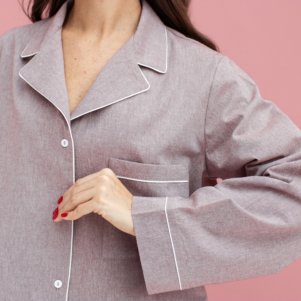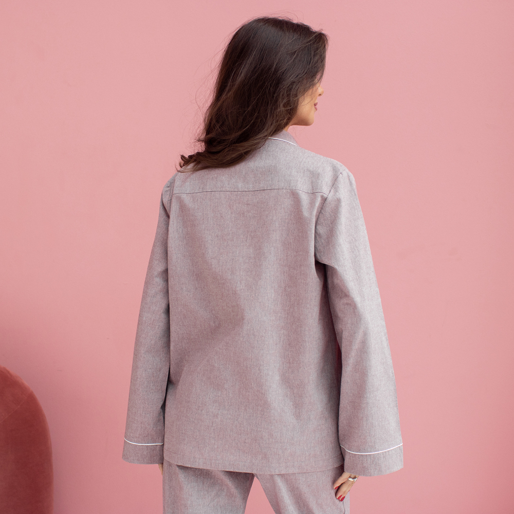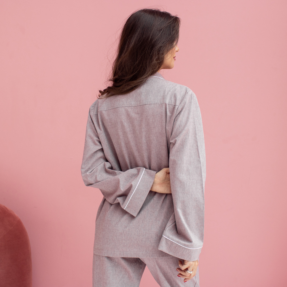 Рубашка из вареного хлопка с длинным рукавом, декорированная контрастными пуговицами и кантом.