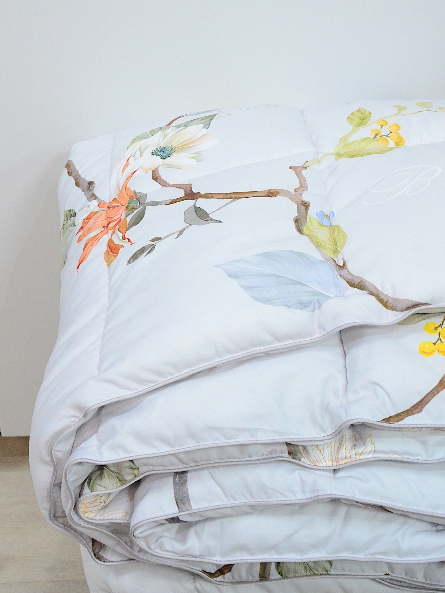 Теплое стеганое одеяло Blumarine будет дарить уют и согревать холодными зимними ночами. Наполнитель из натуральных шелковых и бамбуковых волокон обеспечивает климат-контроль, поддерживает комфортную температуру тела спящего человека. Гипоаллергенное одеяло не накапливает в себе бактерий — эти качества обеспечивают высокую гигиеничность изделия.