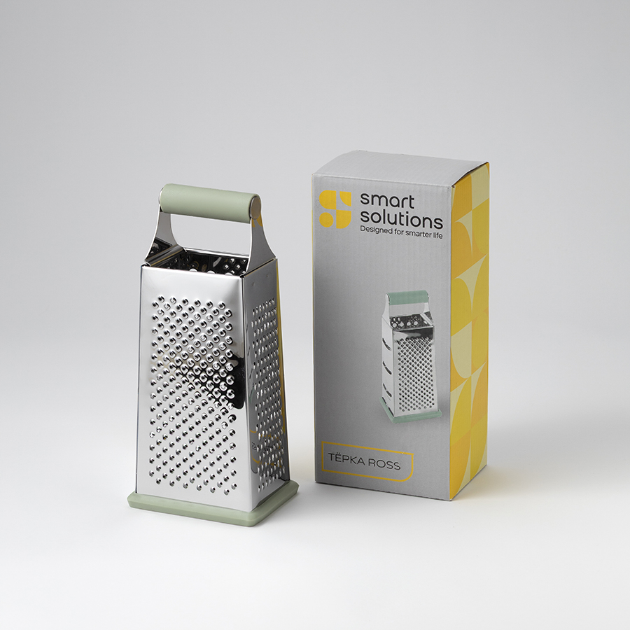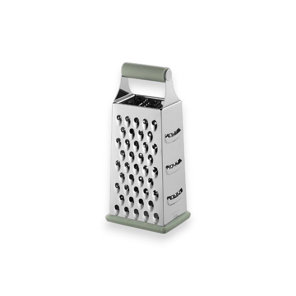 Четырехсторонняя терка из нержавеющей стали подойдет для овощей, фруктов, сыра и других продуктов. 4 рабочих поверхности прибора позволяют выбрать размер измельчения.
