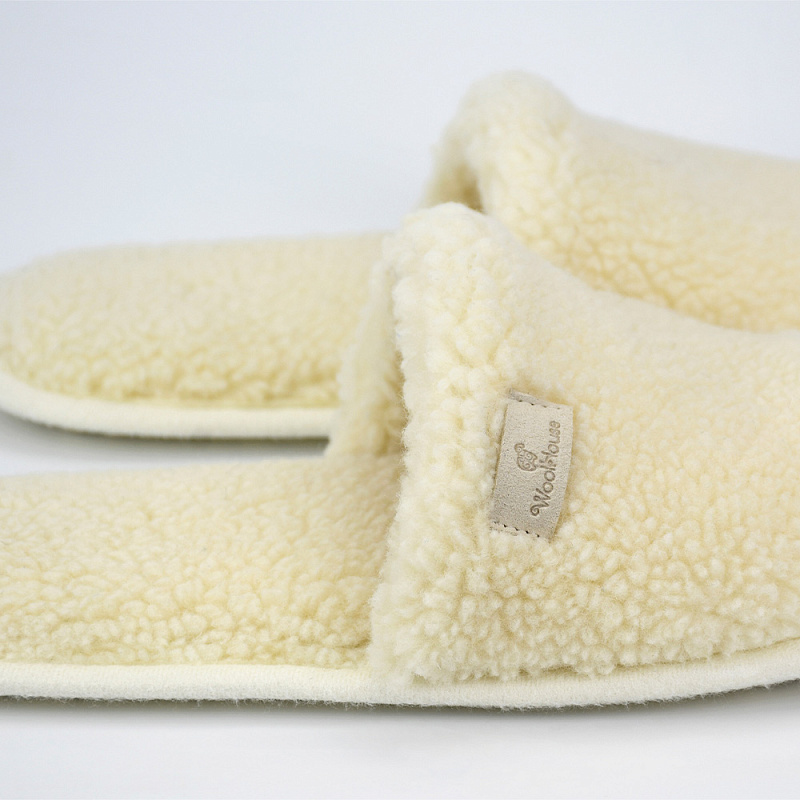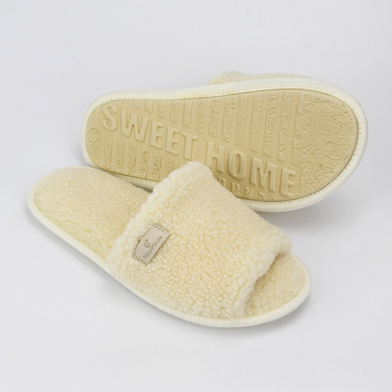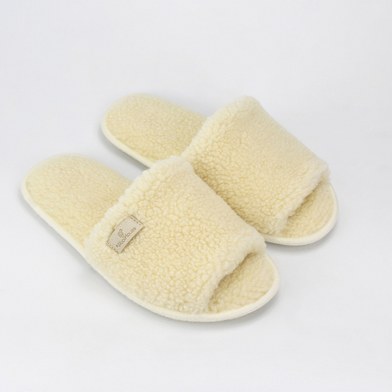 Эти тапочки лучше носить на босую ногу, чтобы испытать на себе все положительные природные качества мериносовой шерсти. Еще один плюс открытой натуральной шерсти - в такой обуви ноги не потеют.