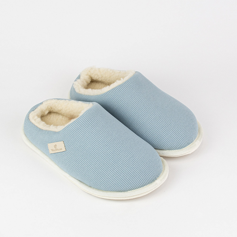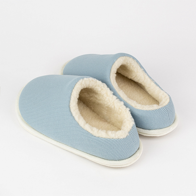 Тапочки с двухслойным верхом и не высоким задником. Верхний слой из х/б рибаны.