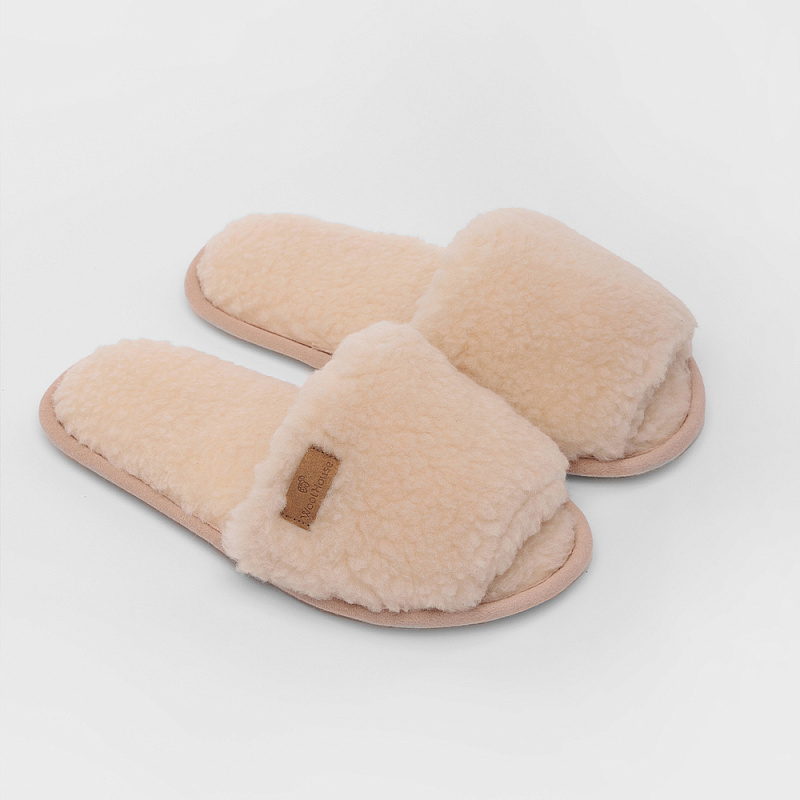 Эти тапочки лучше носить на босую ногу, чтобы испытать на себе все положительные природные качества мериносовой шерсти. Еще один плюс открытой натуральной шерсти - в такой обуви ноги не потеют.
