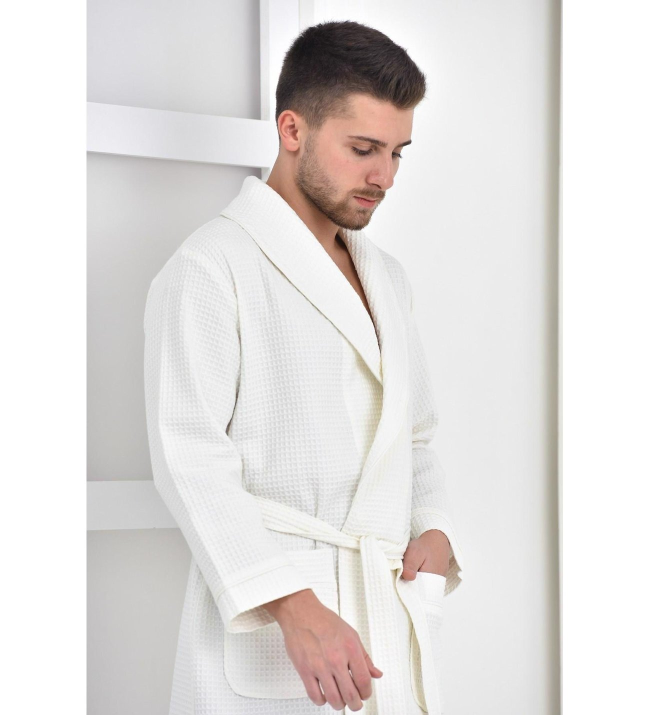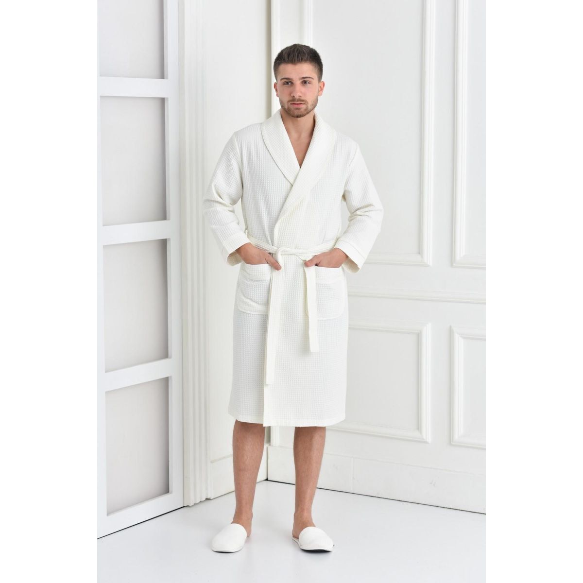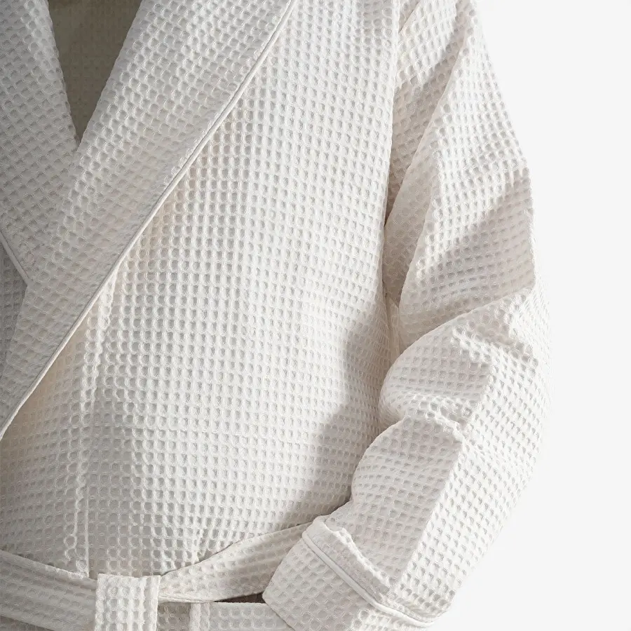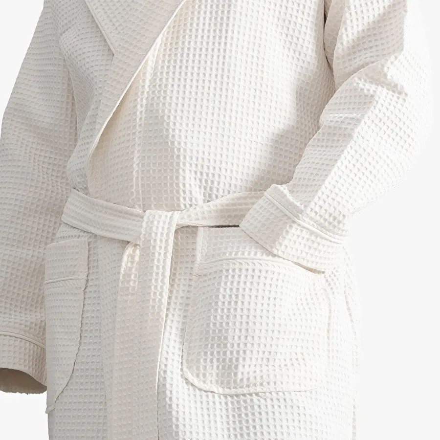 Мягкий вафельный халат из органического хлопка. Это нежная ткань, которая прекрасно впитывает влагу и остается приятной к телу даже после многочисленных стирок