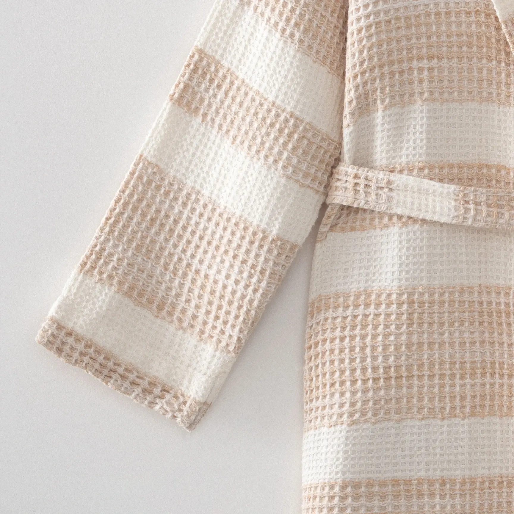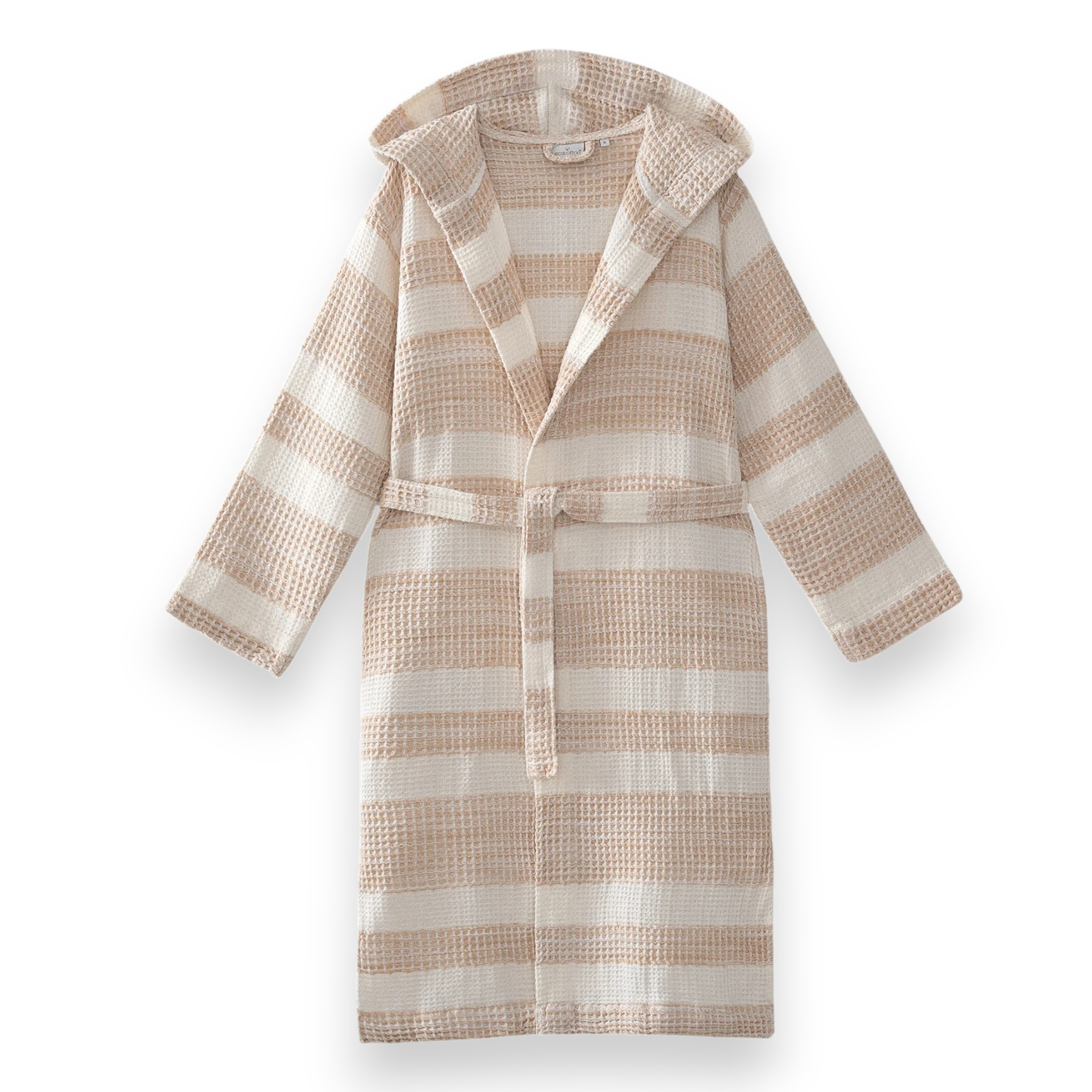 Мягкий вафельный халат из органического хлопка. Это нежная ткань, которая прекрасно впитывает влагу и остается приятной к телу даже после многочисленных стирок.
